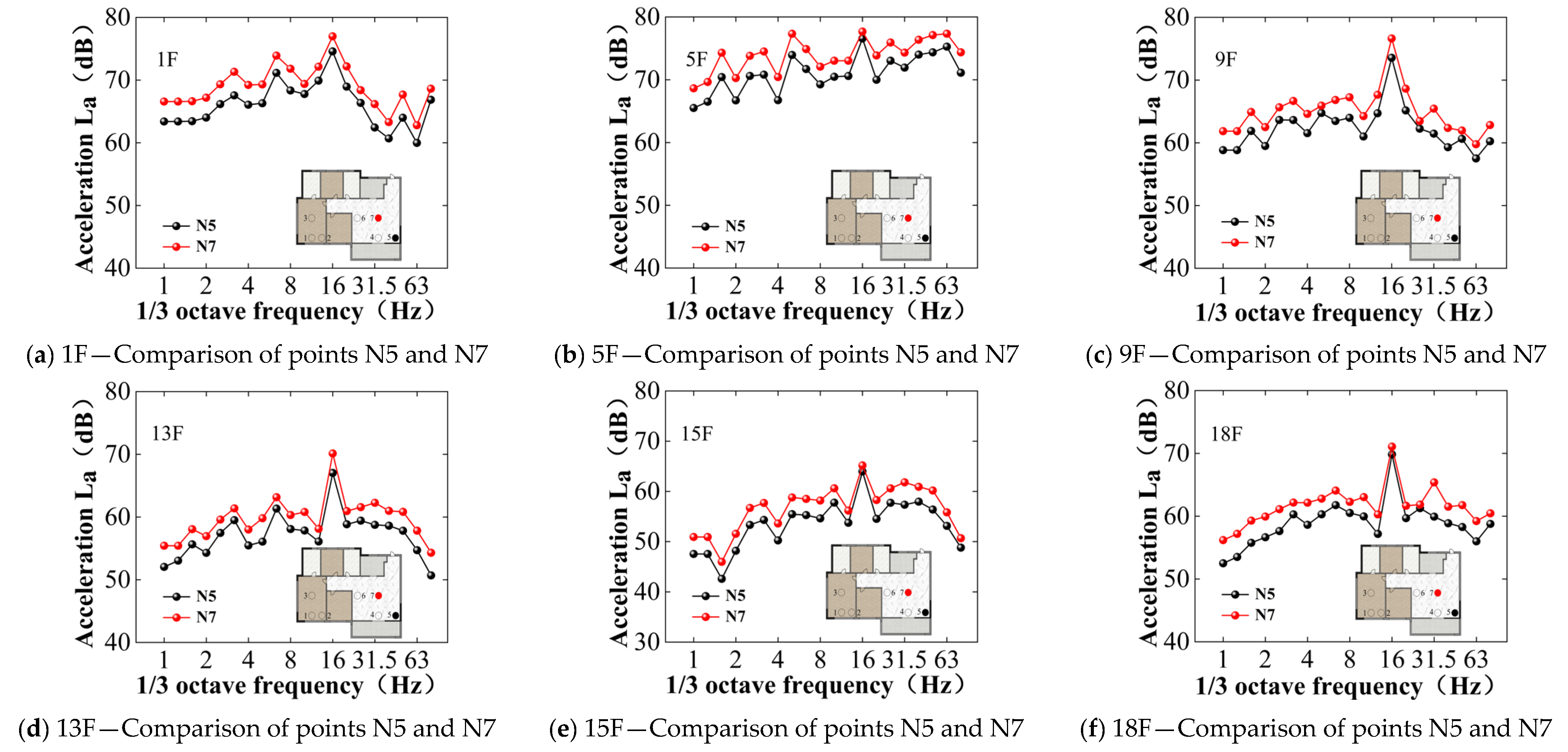 5.2. Influence of Structural Component Types on Vertical Vibration Levels