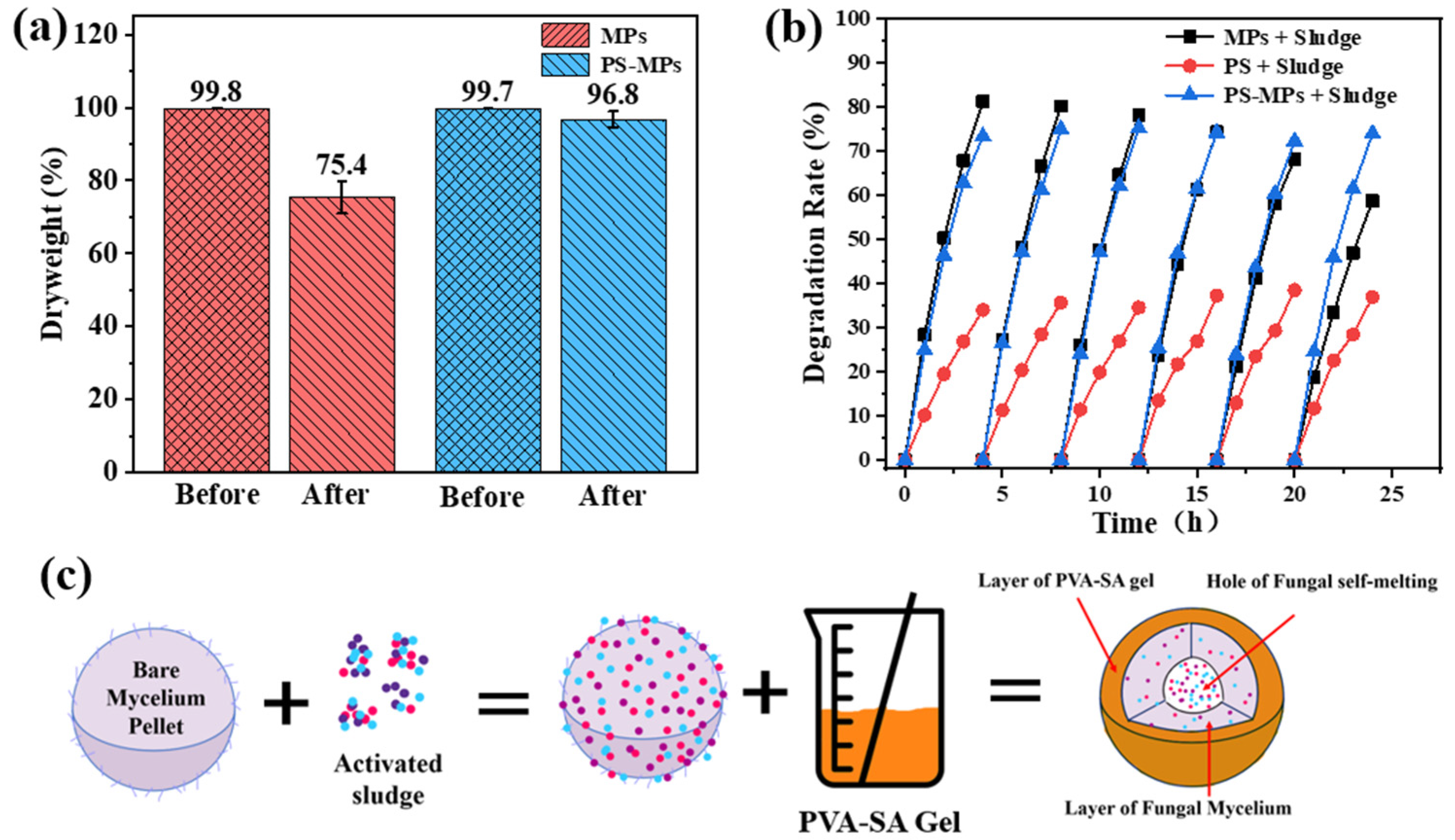 - Wang, H.; Neal, B.; White, B.; Nelson, B.; Lai, J.; Long, B.; Arreola-Vargas, J.; Yu, J.; Banik, M.T.; Dai, S.Y. Microplastics removal in the aquatic environment via fungal pelletization. Bioresour. Technol. Rep. 2023, 23, 101545. [Google Scholar] [CrossRef]
