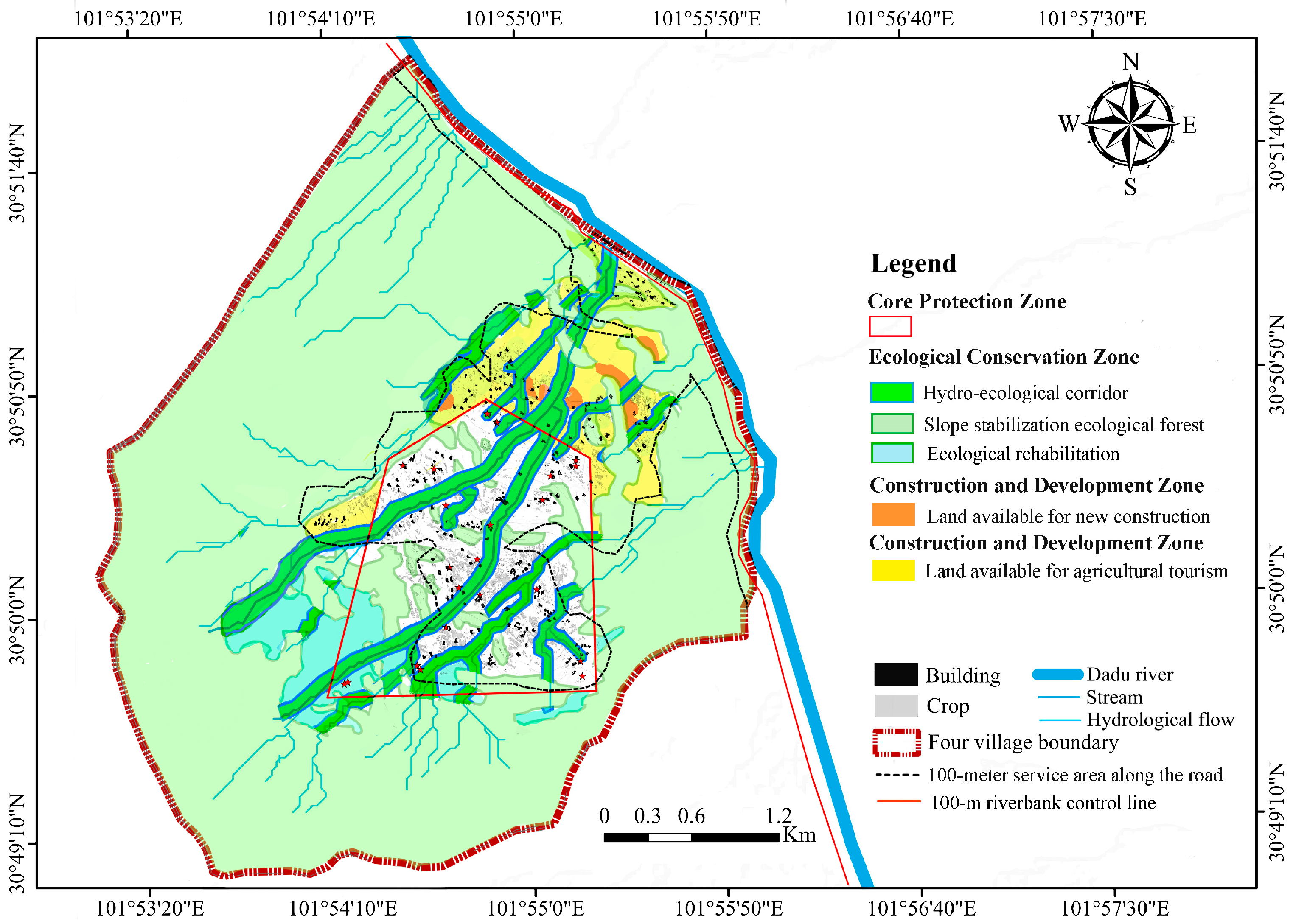The objectives of this study are twofold. First, we aim to develop a micro-scale analytical framework that is capable of identifying how environmental and cultural variables shape settlement distribution in Tibetan villages. Second, we aim to link these findings to planning recommendations that balance conservation with appropriate development, through the delineation of four functional zones: Core Protection, Construction and Development, Ecological Conservation, and Industry Development. By situating micro-scale analysis within a broader planning discourse, this research seeks to advance the understanding of settlement–environment interactions while providing practical guidance for heritage conservation and rural revitalization in mountain regions.