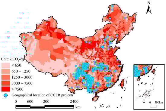 Compared to other voluntary carbon markets, CCER projects in China are more likely to generate reliable emission reductions for the following three reasons. First, China has been one of the largest producers of voluntary emission reduction projects in the world [18]. Prior to implementing the CCER programme, the Chinese government had already developed a large number of CDM projects. The methodologies used in CCER were largely inherited from CDM, providing a solid methodological and operational foundation for CCER implementation [19]. Second, although the CDM framework includes a wide range of methodologies for agricultural and forestry projects, China’s CCER projects in these sectors are relatively specialized, focusing on biogas and afforestation activities. This specialization enhances project quality and strengthens mitigation effectiveness [5]. Third, China has established a national and eight regional emissions trading systems (ETSs), generating strong demand for CCER credits. China’s national ETS allows regulated entities to offset up to 5% of their compliance obligations using CCER credits, without restrictions on the type or origin of CCER projects. Some regional ETSs provide extra preferential policies to encourage ETS entities to purchase local CCER credits [20], which further promotes local project development and facilitates regional emission reductions. Therefore, we proposed the following hypothesis: