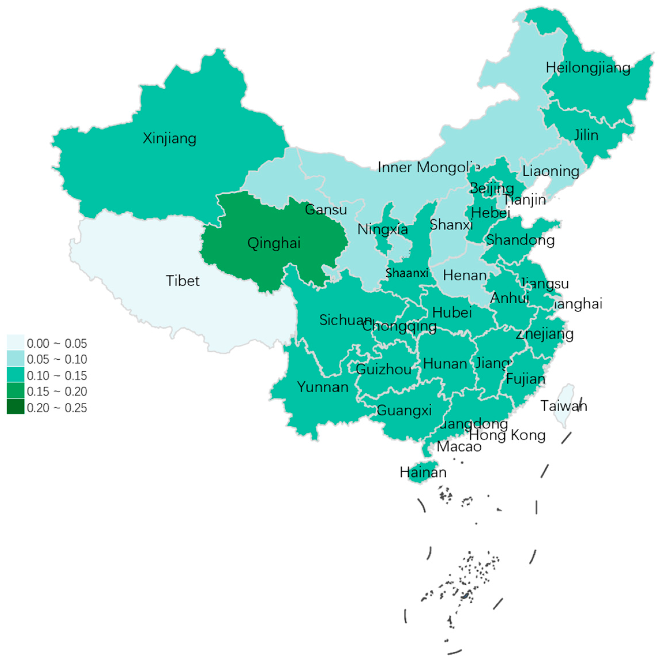- Guo, F.; Wang, J.; Wang, F.; Kong, T.; Zhang, X.; Cheng, Z. Measuring China’s digital financial inclusion: Index compilation and spatial characteristics. China Econ. Q. 2020, 19, 1401–1418. [Google Scholar]