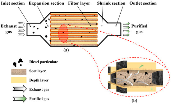 - Ye, J.; E, J.; Peng, Q. Effects of porosity setting and multilayers of diesel particulate filter on the improvement of regeneration performance. Energy 2023, 263, 126063. [Google Scholar] [CrossRef]