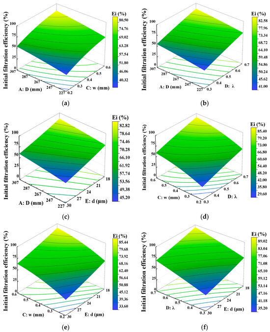 - For the model in this paper, MLR is reliable. For initial filtration efficiency, the coefficient of determination R2 = 0.979 and D-W = 1.717; for pressure drop, R2 = 0.957 and D-W = 1.825; the VIF of all independent variables is <2 and p < 0.01. Under interaction, pressure drop is more sensitive to overall dimensions, while initial filtration efficiency is more sensitive to filter substrate characteristics.