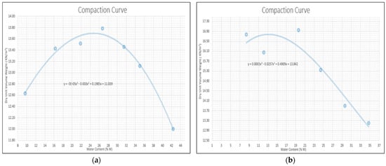 Compaction curve of 70B30S (a) and compaction curve of 70S30B (b).