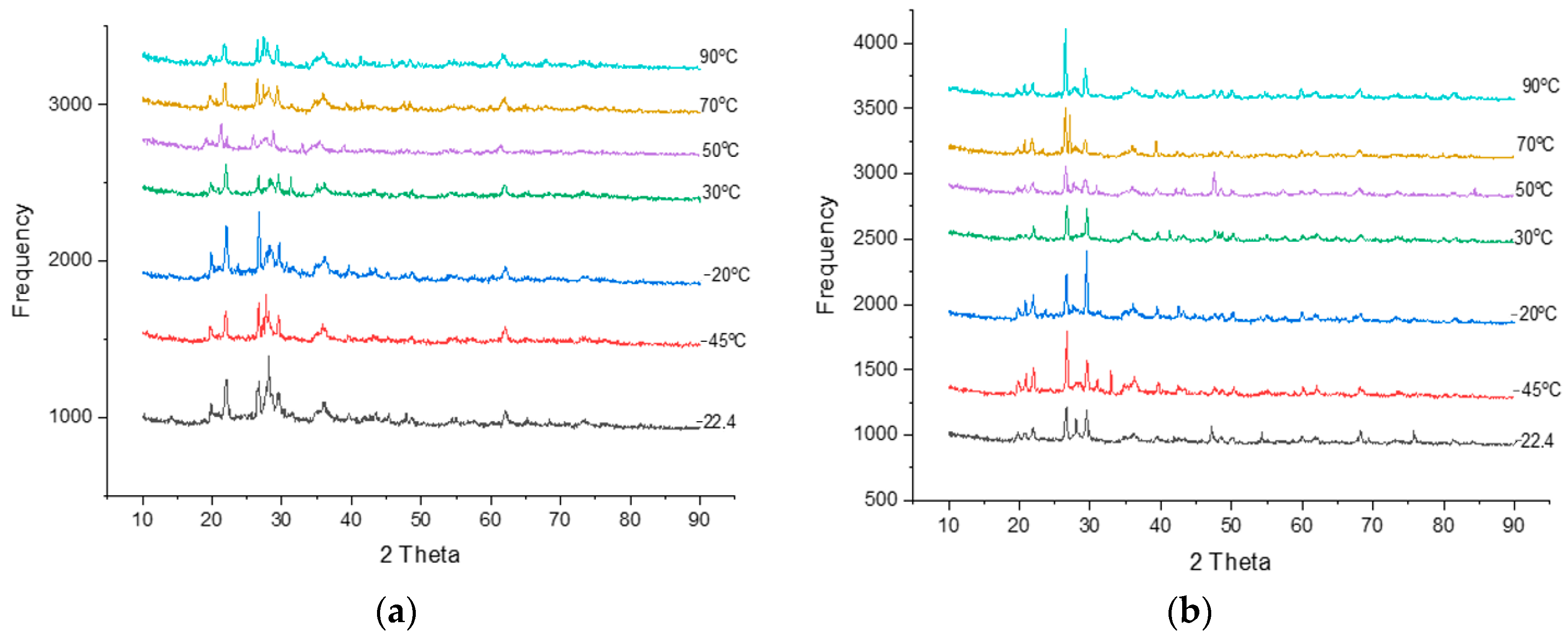 - Yilmaz, G. The Effects of Temperature on the Characteristics of Kaolinite and Bentonite. Sci. Res. Essays 2011, 6, 1928–1939. [Google Scholar] [CrossRef]