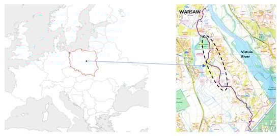 Location of the study site in the Wilanówka River section (GPS: 52°08′18.3″ N 21°08′16.5″ E).