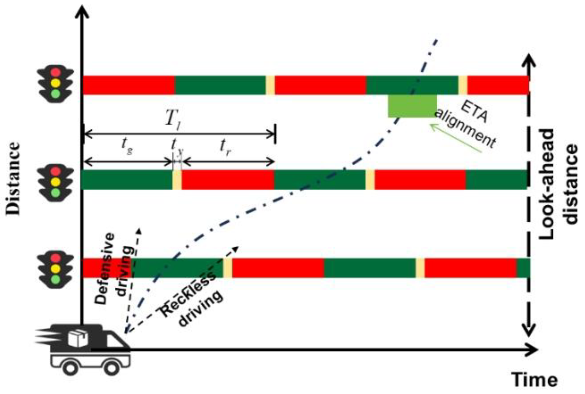 4.1. Coordinated Speed-Route Optimization for Individual Vehicles