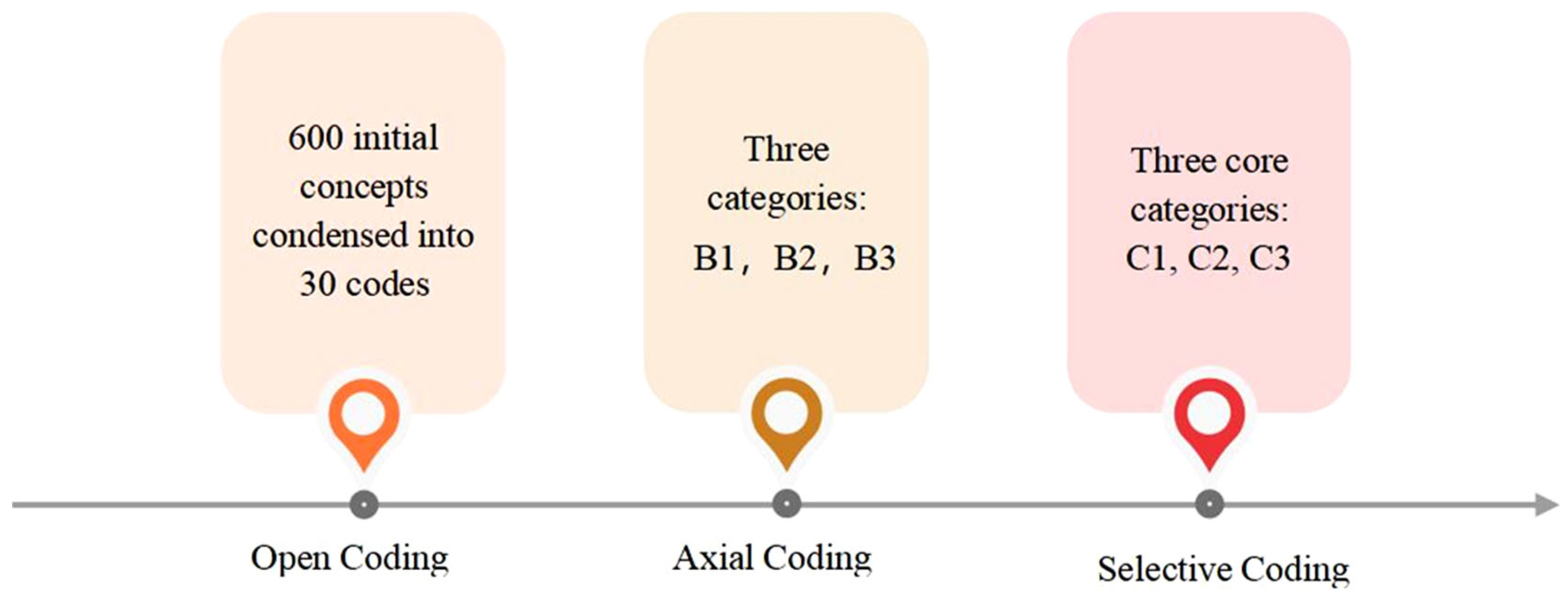 Initial Coding (Participants 1–20) | 20 interviews | A1–A30 | Total frequency: 600 | Formed 30 open codes, 3 axial codes, and 3 core categories |