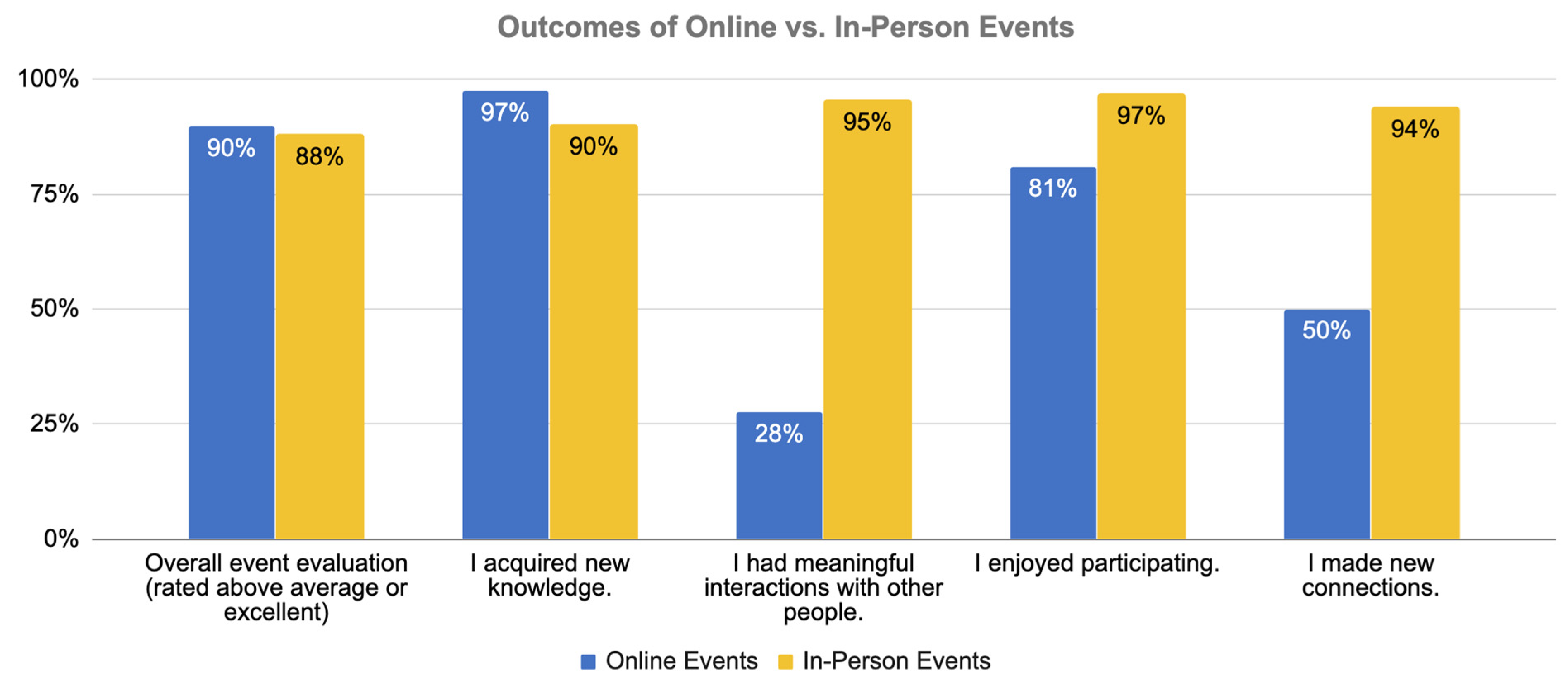 - I made new connections. (Options: Strongly Agree, Agree, Neither Agree nor Disagree, Disagree, Strongly Disagree)