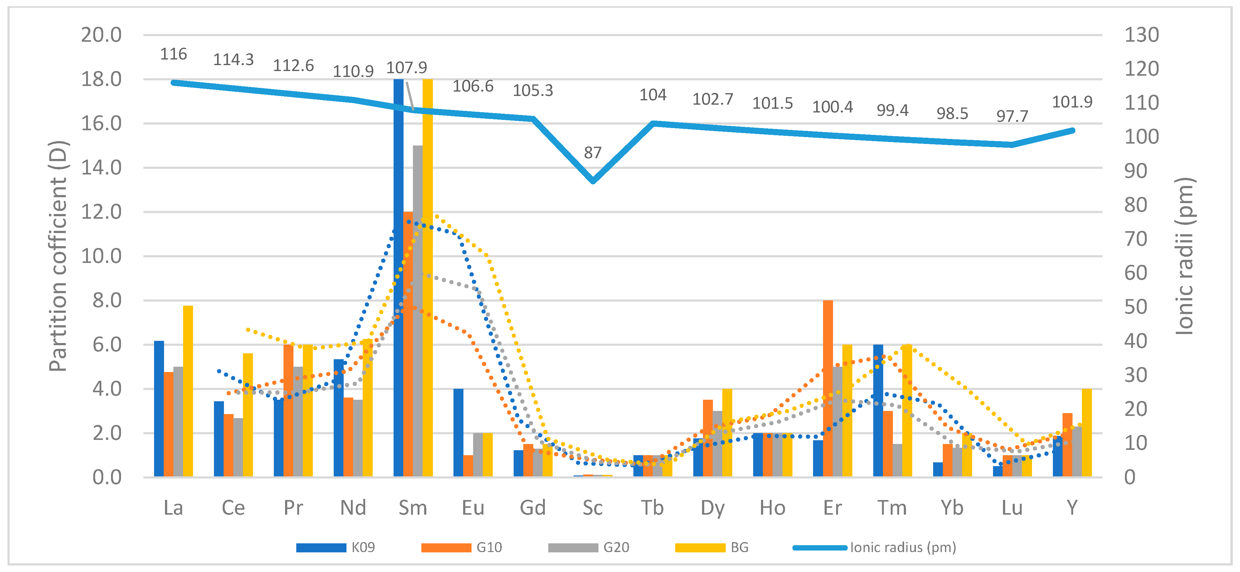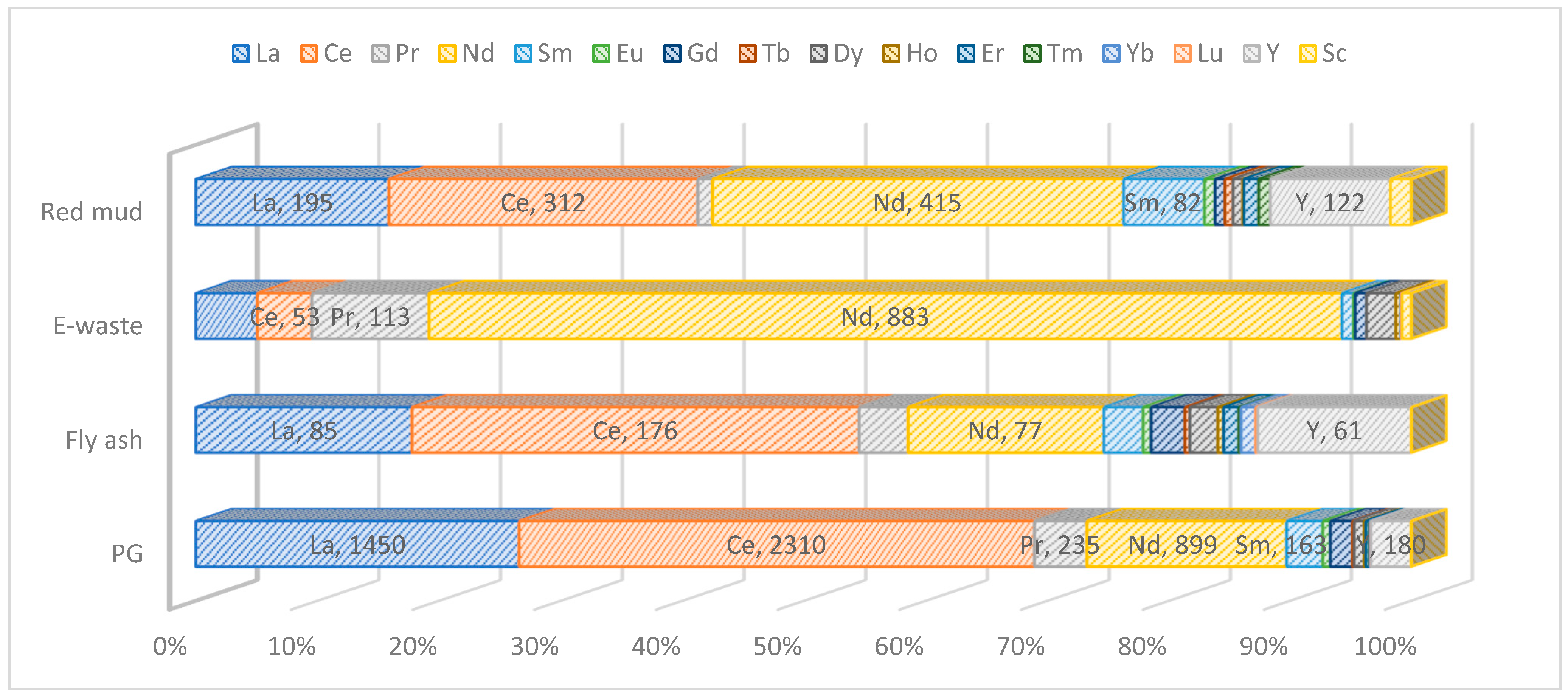| Waste | La | Ce | Pr | Nd | Sm | Eu | Gd | Tb | Dy | Ho | Er | Tm | Yb | Lu | Y | Sc | Ref. |