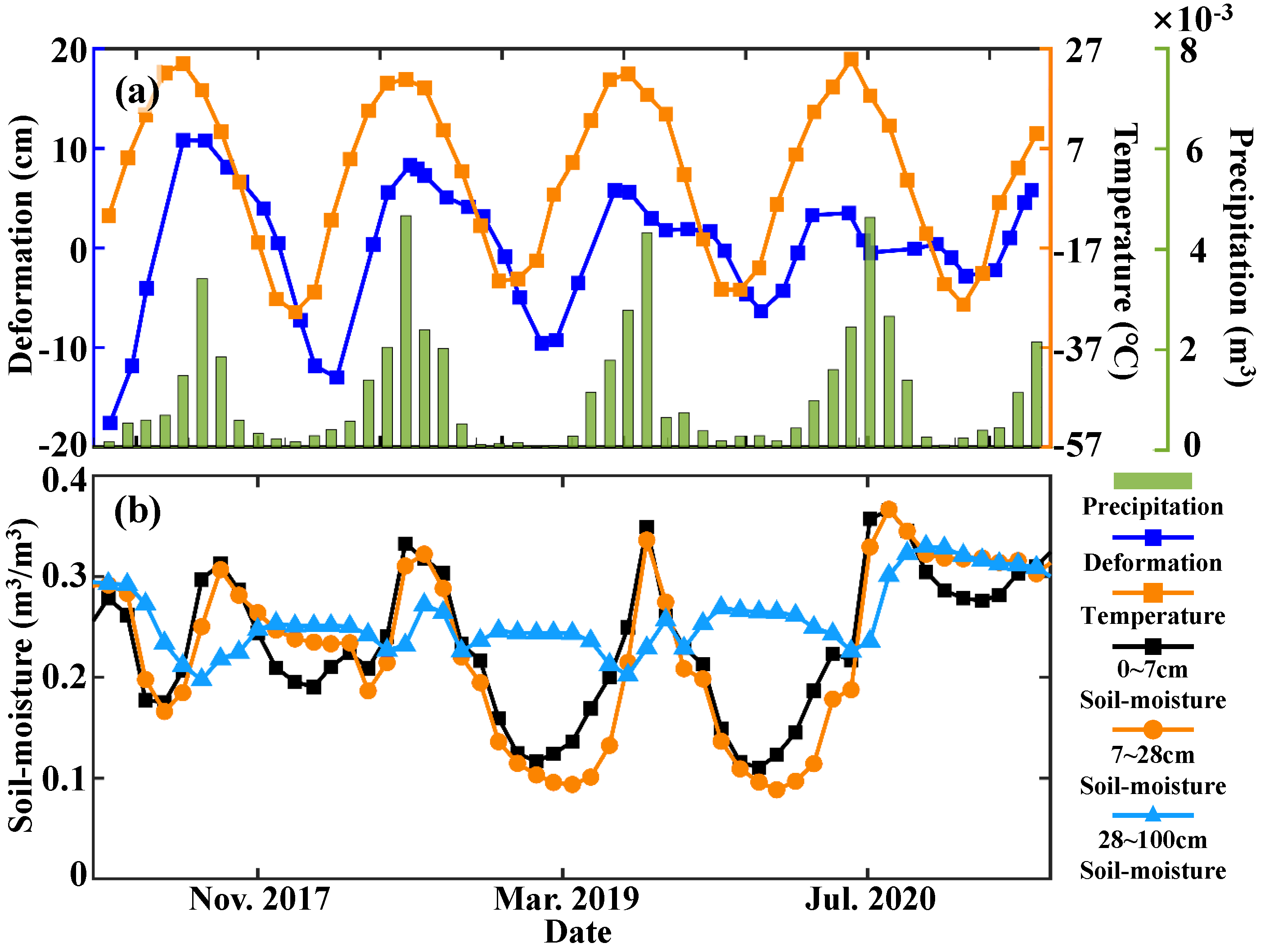 4.3. Correlation Analysis Between Periodic Deformation and Precipitation