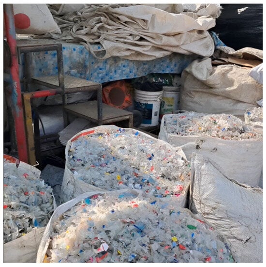 Post-Shredding Collection of Recycled PET Materials for Further Processing.