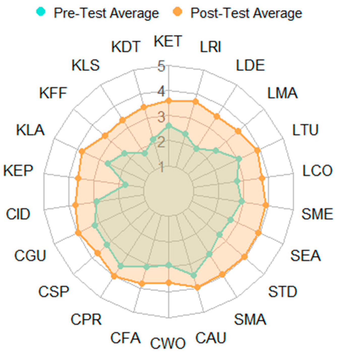 Entrepreneurial Competencies | 2.86 ± 0.70 | 3.91 ± 0.52 | <0.001 | <0.001 | 0.87 (large) |