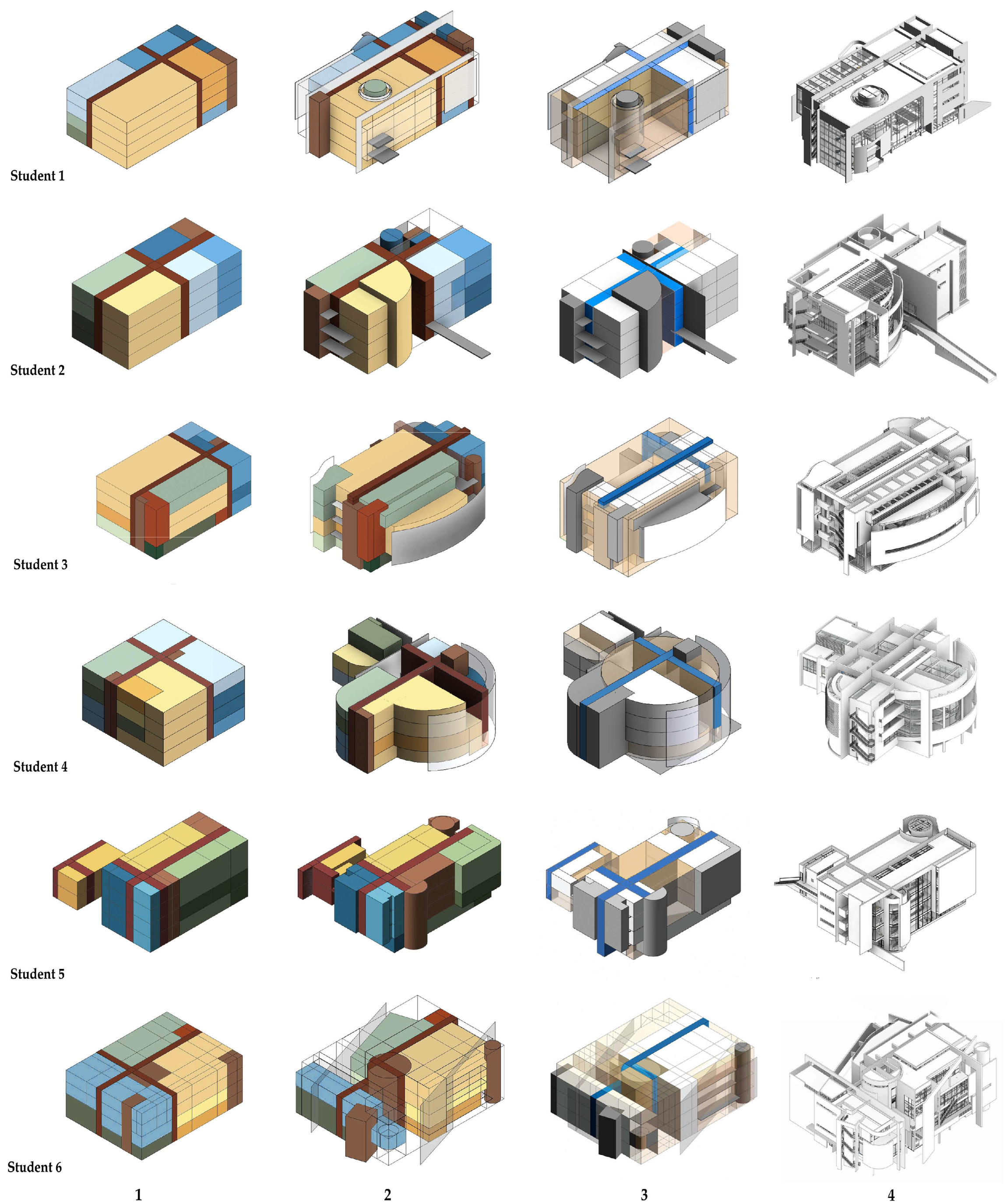 - Scope Limitations: The focus on Richard Meier’s modernist Western architectural language, while providing methodological control, limits generalizability to approaches rooted in regional cultures, vernacular traditions, or alternative design philosophies. The single project context (public library design) may not represent the framework’s effectiveness across other architectural typologies with different programmatic complexities. Additionally, the Architecture Design III course focuses on formal methods, limiting the full exploration of advanced building technical considerations.
