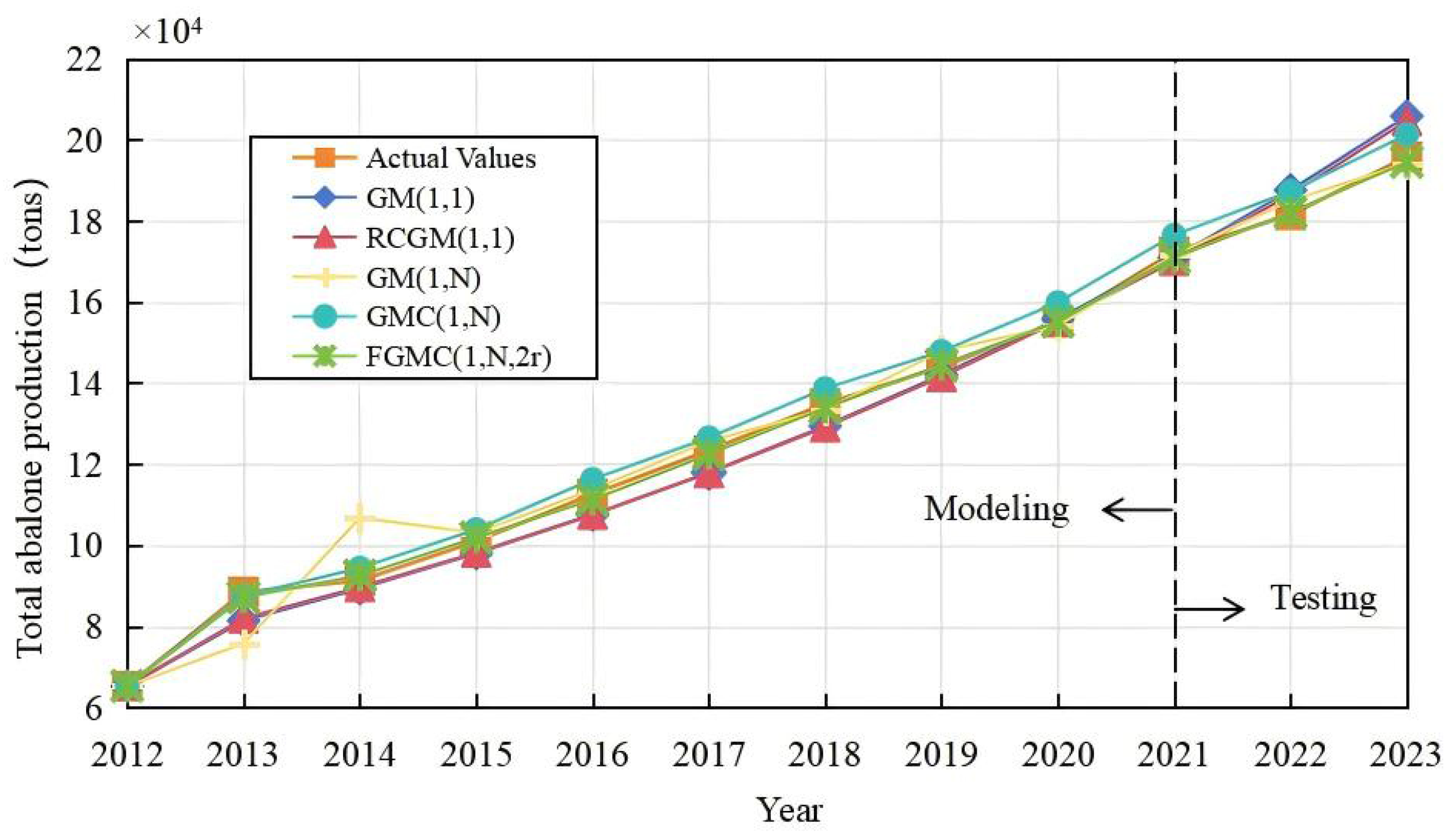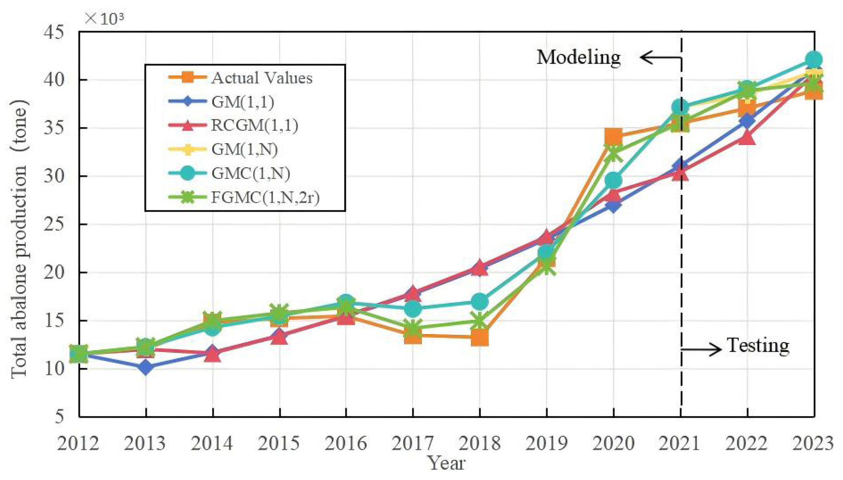 Figure 5. Model comparison for abalone production predictions in Fujian Province.