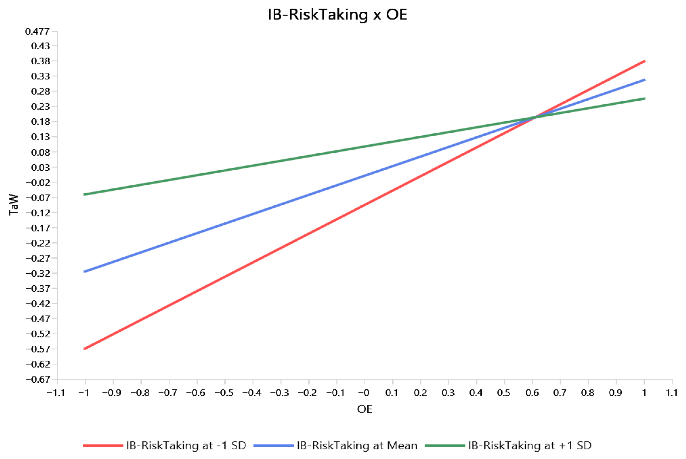 H5b. Risk-taking behaviour moderates the relationship between OE and TaW, assuming that the link will be stronger when risk-taking behaviour is higher.