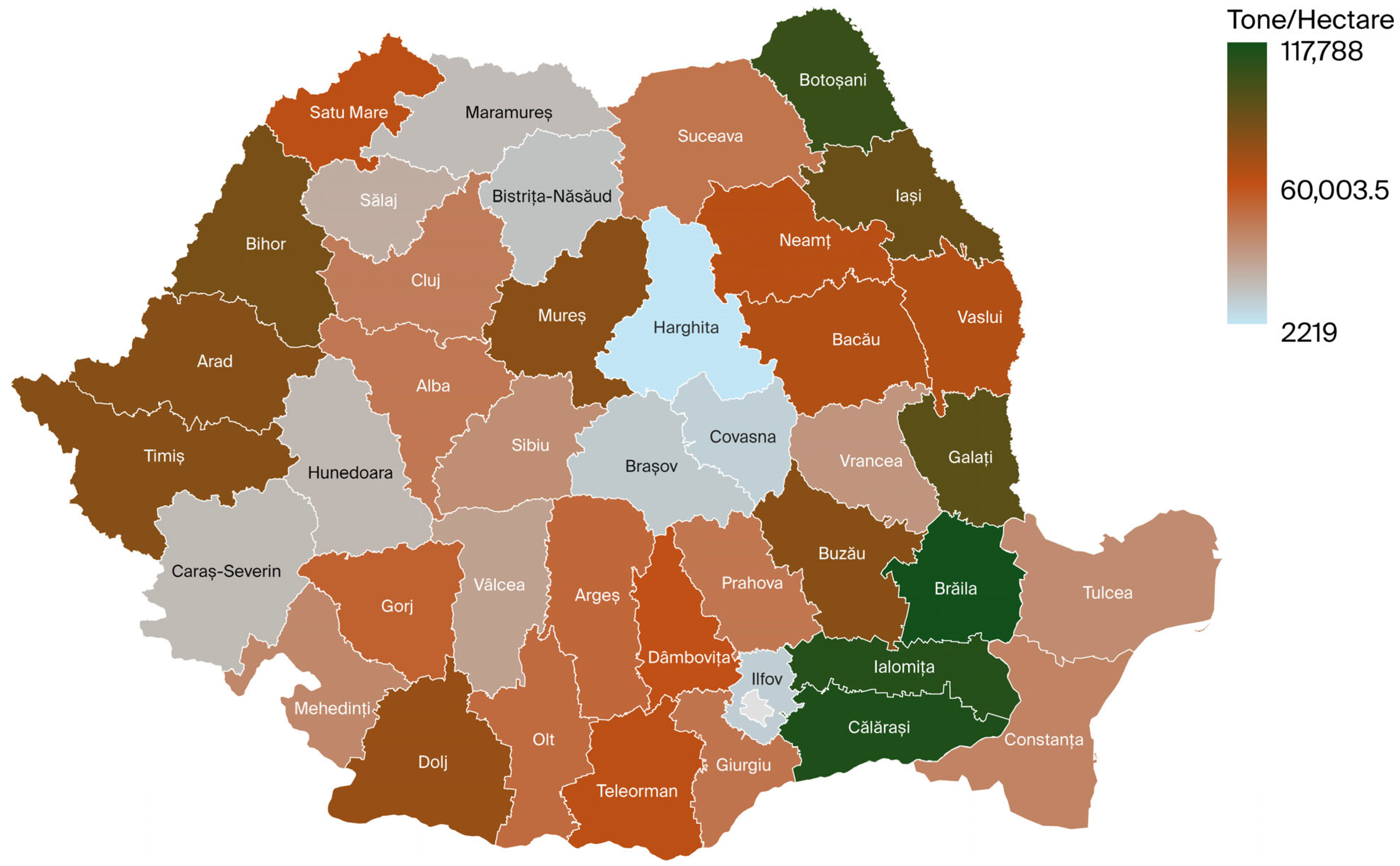 Figure 6. Area cultivated with maize in Romania in 2023.