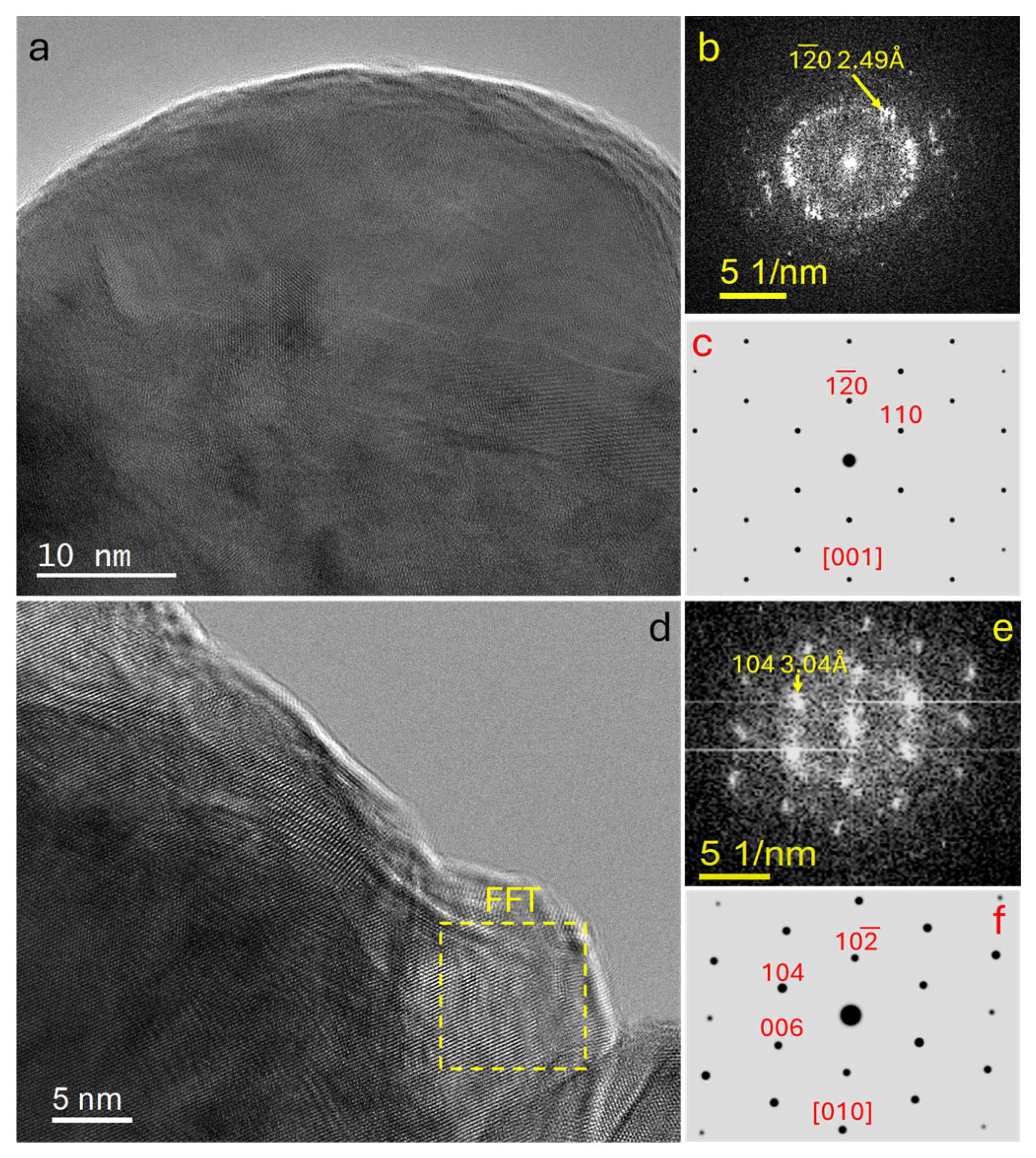 - Li, D.; Nielsen, M.H.; Lee, J.R.I.; Frandsen, C.; Banfield, J.F.; De Yoreo, J.J. Direction-Specific Interactions Control Crystal Growth by Oriented Attachment. Science 2012, 336, 1014–1018. [Google Scholar] [CrossRef]
