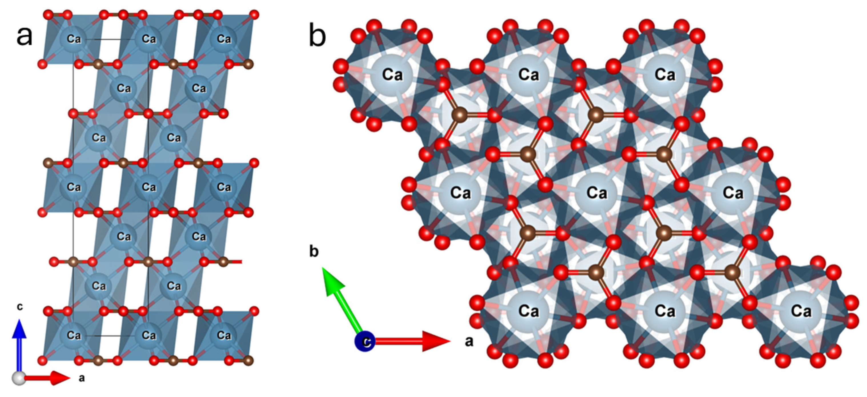 - Markgraf, S.A.; Reeder, R.J. High-Temperature Structure Refinements of Calcite and Magnesite. Am. Mineral. 1985, 70, 590–600. [Google Scholar]
