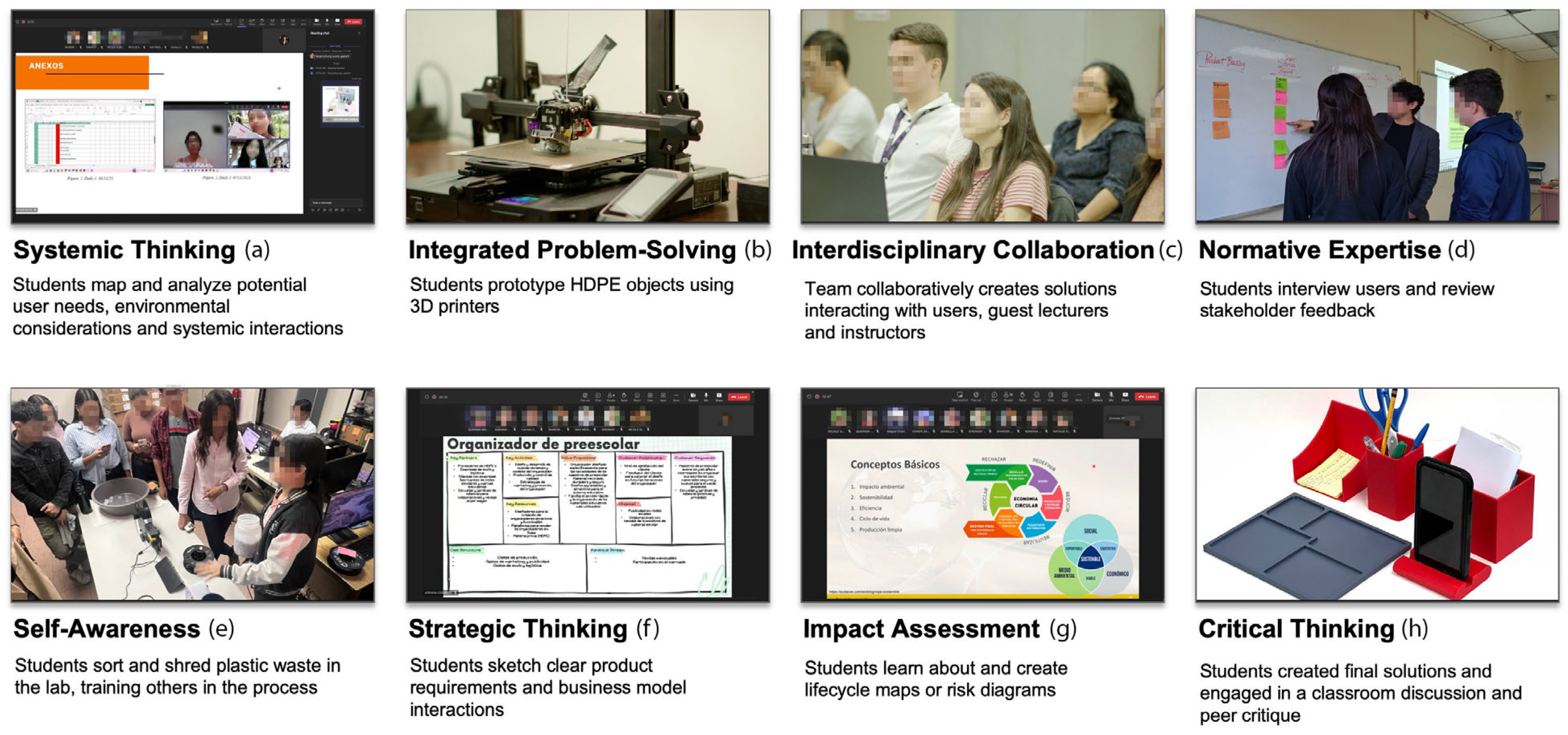 Design of Sustainable Products Using Recycled HDPE | Students designed prototypes using HDPE waste collected and processed in the university lab. The design phase required students to consider the environmental impacts of product life cycles, user needs, and material limitations. | This process developed systemic thinking by requiring learners to anticipate how design choices would interact with sustainability goals, user behavior, and production constraints. It encouraged thinking across the entire value chain, from material sourcing to end-of-life disposal. |