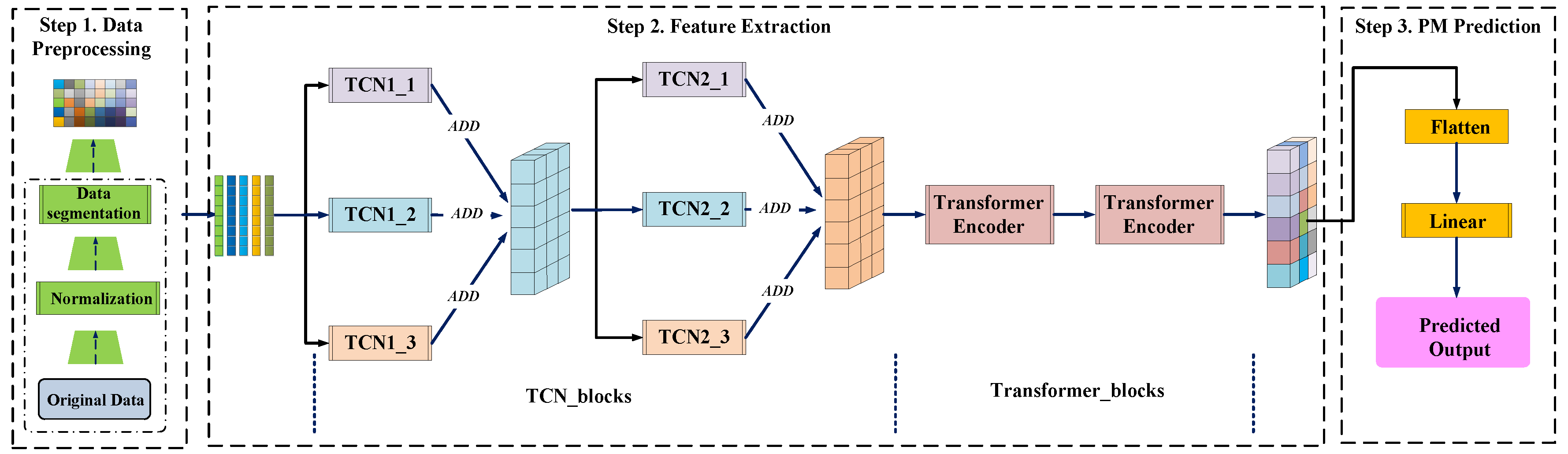- Ren, Y.; Wang, S.; Xia, B. Deep learning coupled model based on TCN-LSTM for particulate matter concentration prediction. Atmos Pollut. Res. 2023, 14, 101703. [Google Scholar] [CrossRef]