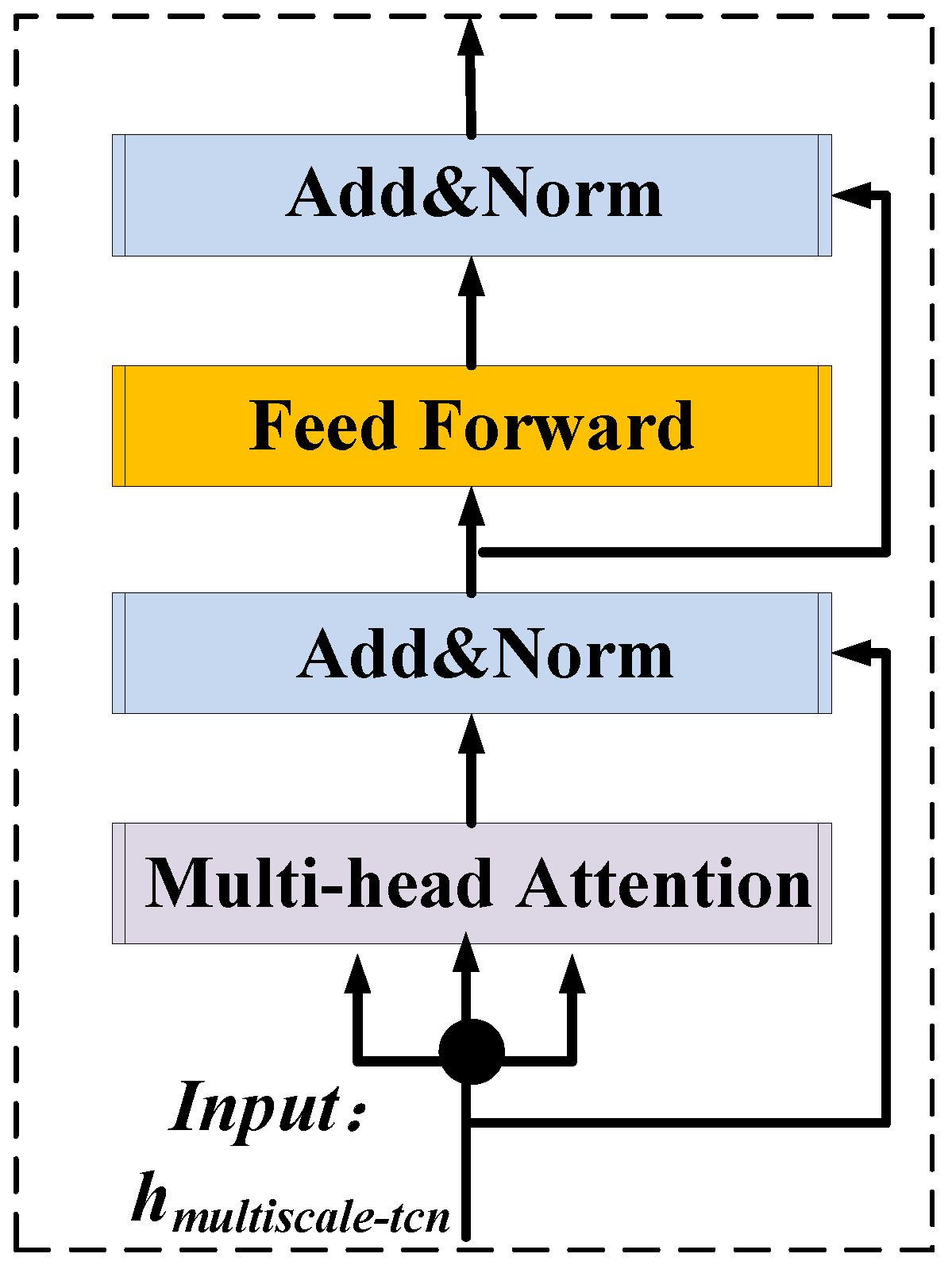 - MSTTNet_1 (single-scale TCNs with transformer): This alternative abandons the multi-scale structure, which only retains the single-channel TCN, but the structure of the transformer block remains unchanged.