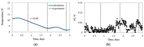 It has been demonstrated that the method under consideration is effective in recovering the thermophysical properties of soils from in situ temperature time series. This is a direct consequence of the fact that the numerical calculation can accurately reproduce the measured time dependence of temperature at multiple depths by selecting the coefficients of thermal diffusivity of multiple soil horizons. The proposed method for regarding the thermophysical properties of soil, in conjunction with soil water content measurements, enabled the evaluation of the thermal conductivity coefficients for the solid substance of soil (λs) and for the dry soil (λdry), in addition to determining the instant value of thermal conductivity. The latter allows one to determine a soil’s thermal conductivity based on measurements of the soil’s density and water content. In this way, the method under consideration can be effectively employed in conjunction with other instrumental methods of measuring thermophysical properties or as a substitute for them when their use is not feasible.