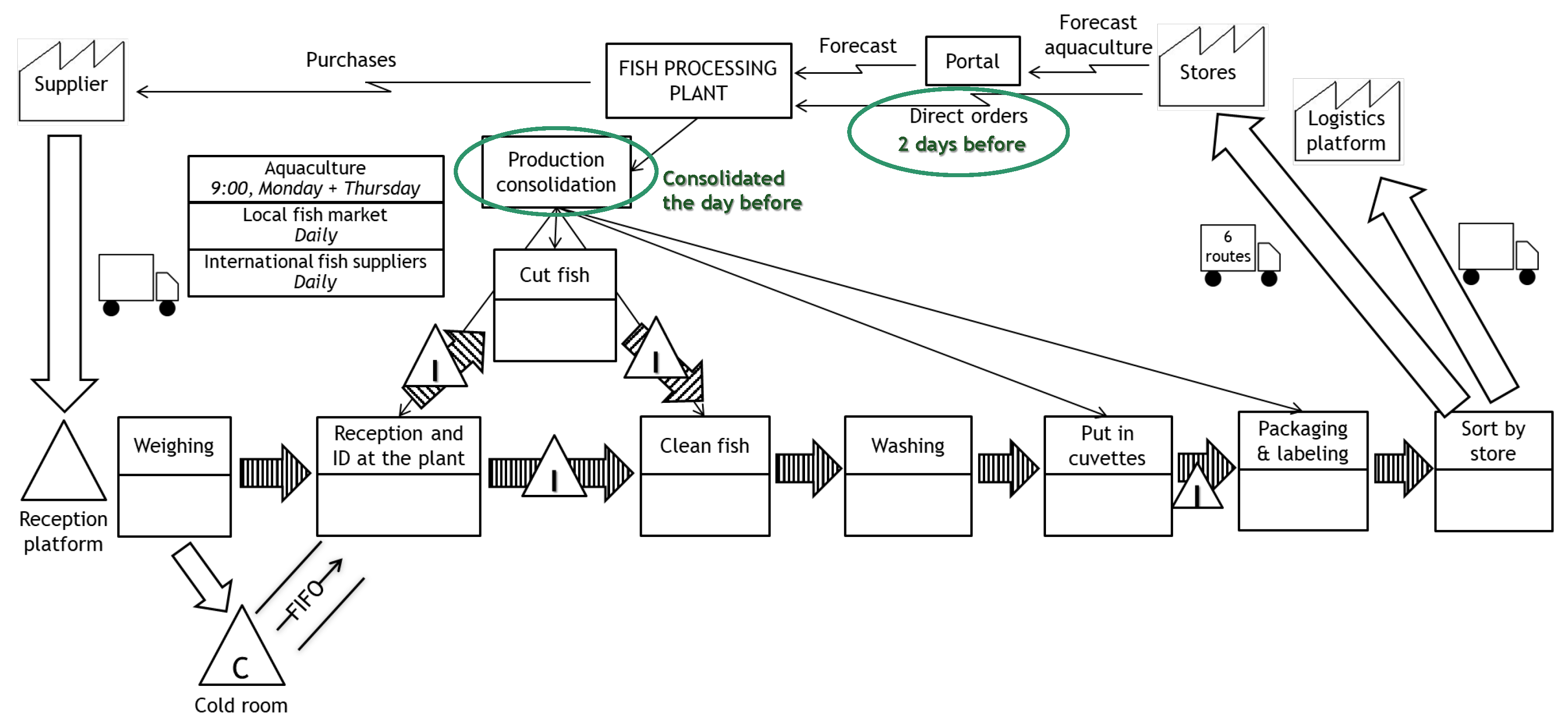 - The promotion of a continuous flow that prevents the accumulation of stockpiles in the fish cleaning and cutting areas.