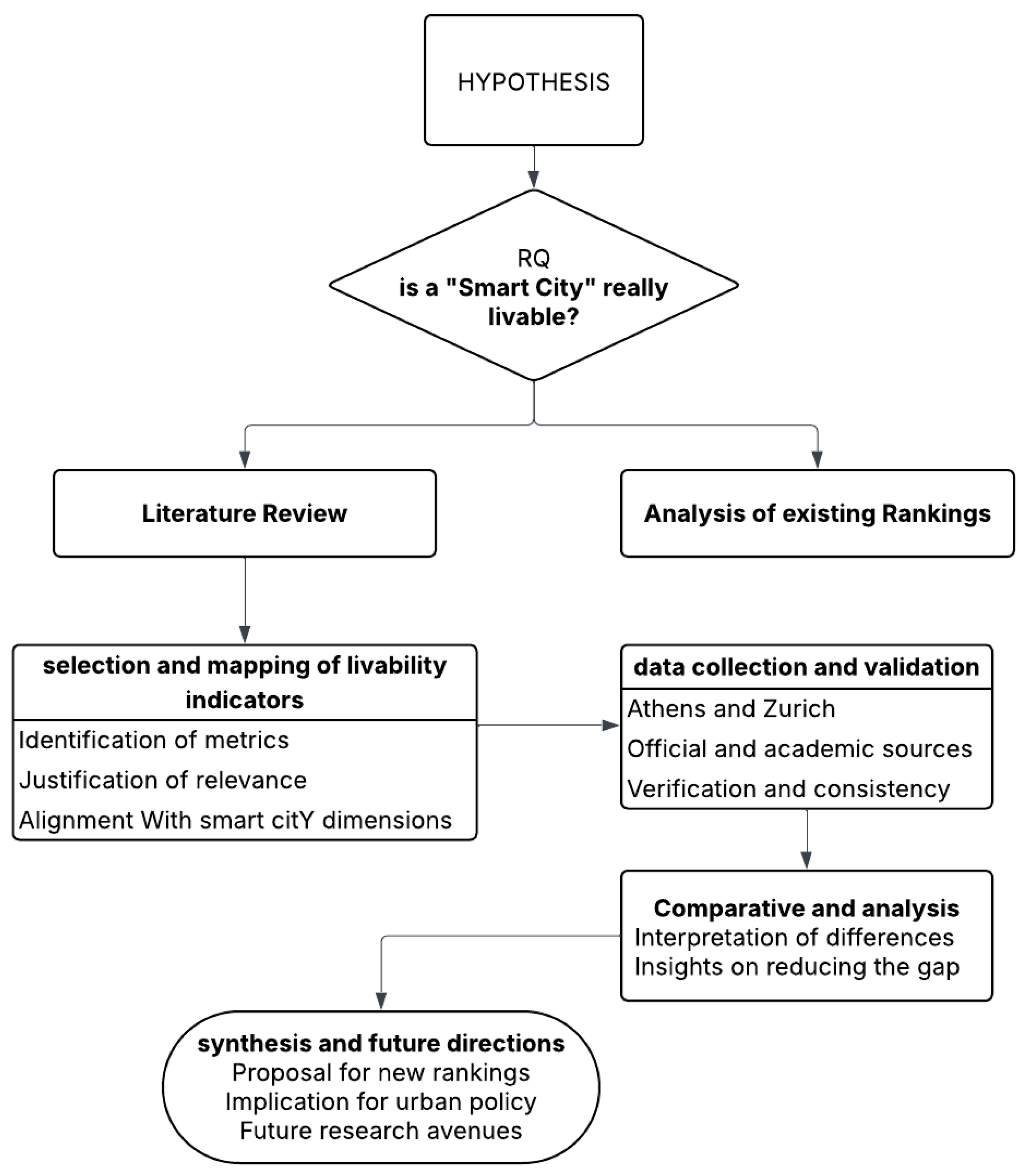 Bove, A.; Ghiraldelli, M. Smart but Unlivable? Rethinking Smart City Rankings Through Livability and Urban Sustainability: A Comparative Perspective Between Athens and Zurich. Sustainability 2025, 17, 8901. https://doi.org/10.3390/su17198901