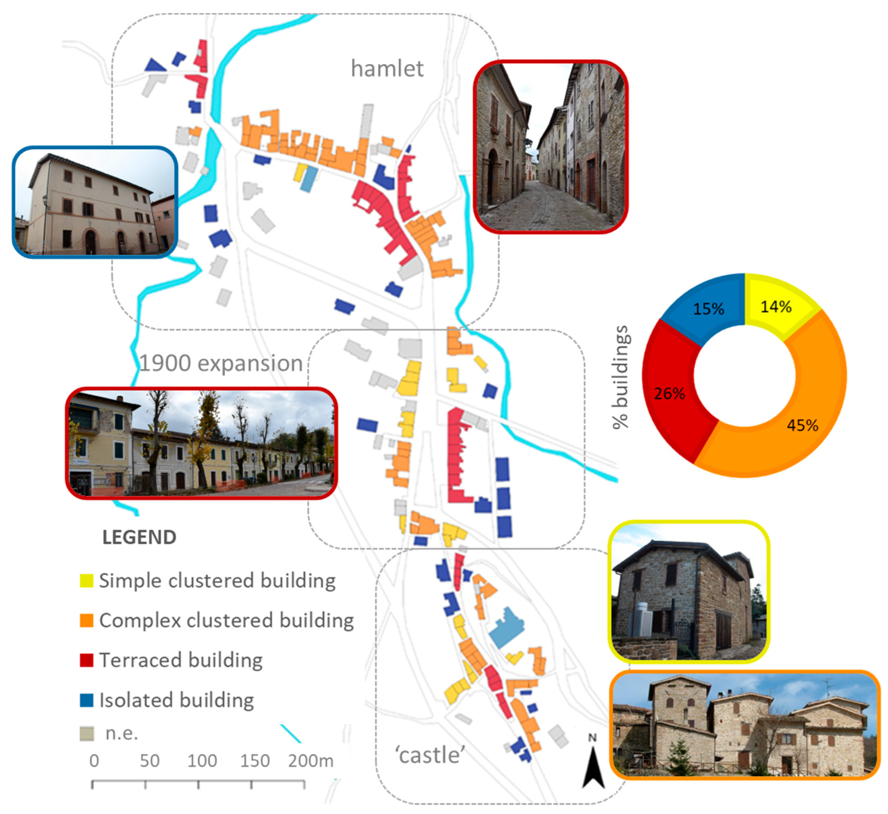 - Ciuffoni, L.; Ottaviani, P.; Murtezani, A.; Vitagliano, A.; Troli, V.; Campetella, A. Linee Guida per la Ricostruzione. Comune di Valfornace. 2021. Available online: https://www.comune.valfornace.mc.it/amministrazione-trasparente/documenti-cms/linee-guida-per-la-ricostruzione-approvato-con-d-c-c-8-del-13-03-2021/ (accessed on 14 August 2025).