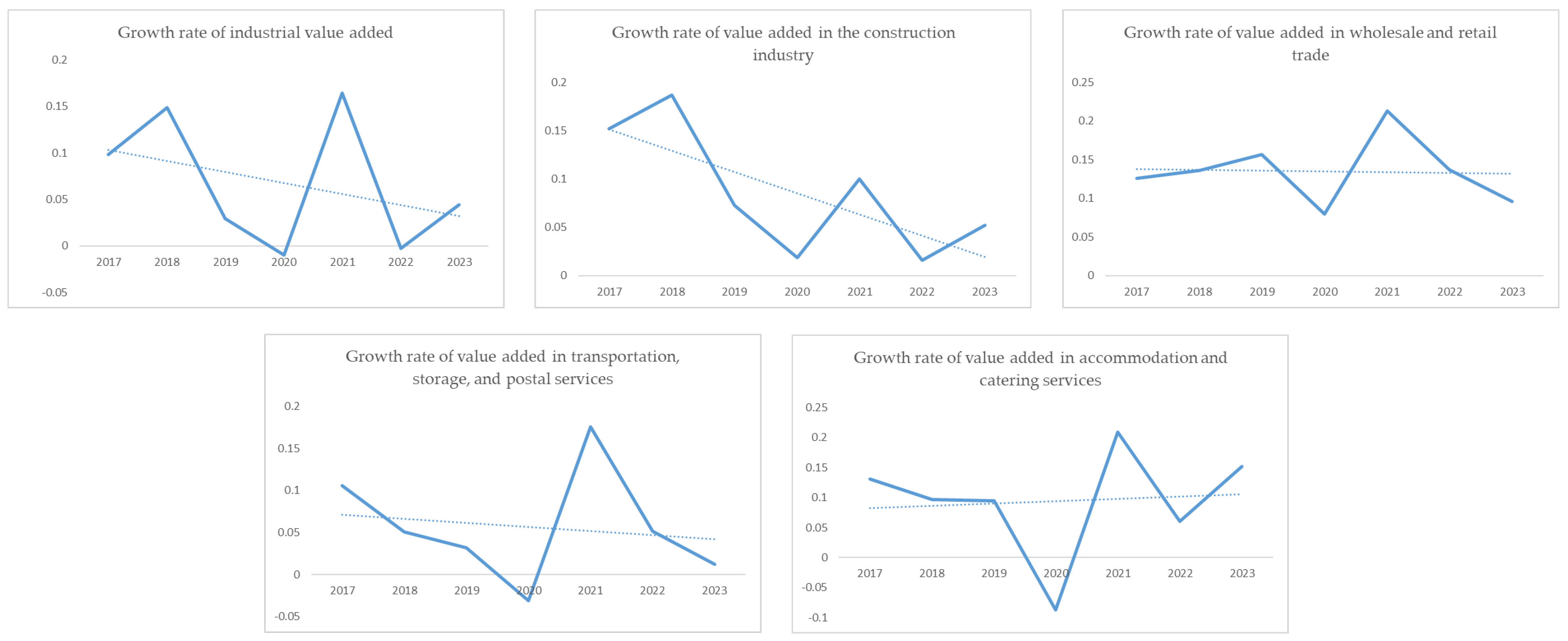 Transport, Warehousing and Post | value-added growth | −0.0308 | 0.1759 | 0.0517 | 0.9933 |
