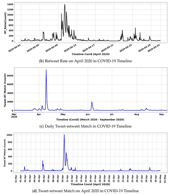 Retweet rates and tweet-retweet matches were observed in the COVID-19 timeline.