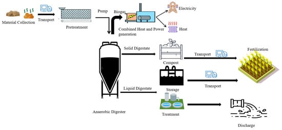 Compared to other manure-management options, AD systems require a more complex infrastructure and stricter process control. These include maintaining temperature and pH, sustaining microbial communities, and implementing safety and emergency protocols. It involves several stages and activities (Figure 1), such as collection, storage, pretreatment of manure and co-digestion substrate [8], biogas utilization (e.g., combined heat and power generation), treatment and utilization of digestate [9], transportation of feedstock and digestate [10], and building construction and producing facilities for the above stages [11]. Each stage consumes extra energy and emits pollutants. Hence, the overall benefits of manure AD to save fossil energy resources and mitigate greenhouse gas emissions could not be judged solely by the stage of anaerobic fermentation and biogas utilization. For a comprehensive and objective understanding of the actual effects of manure AD on natural environment, a systematic analysis method that includes all relevant stages should be employed.