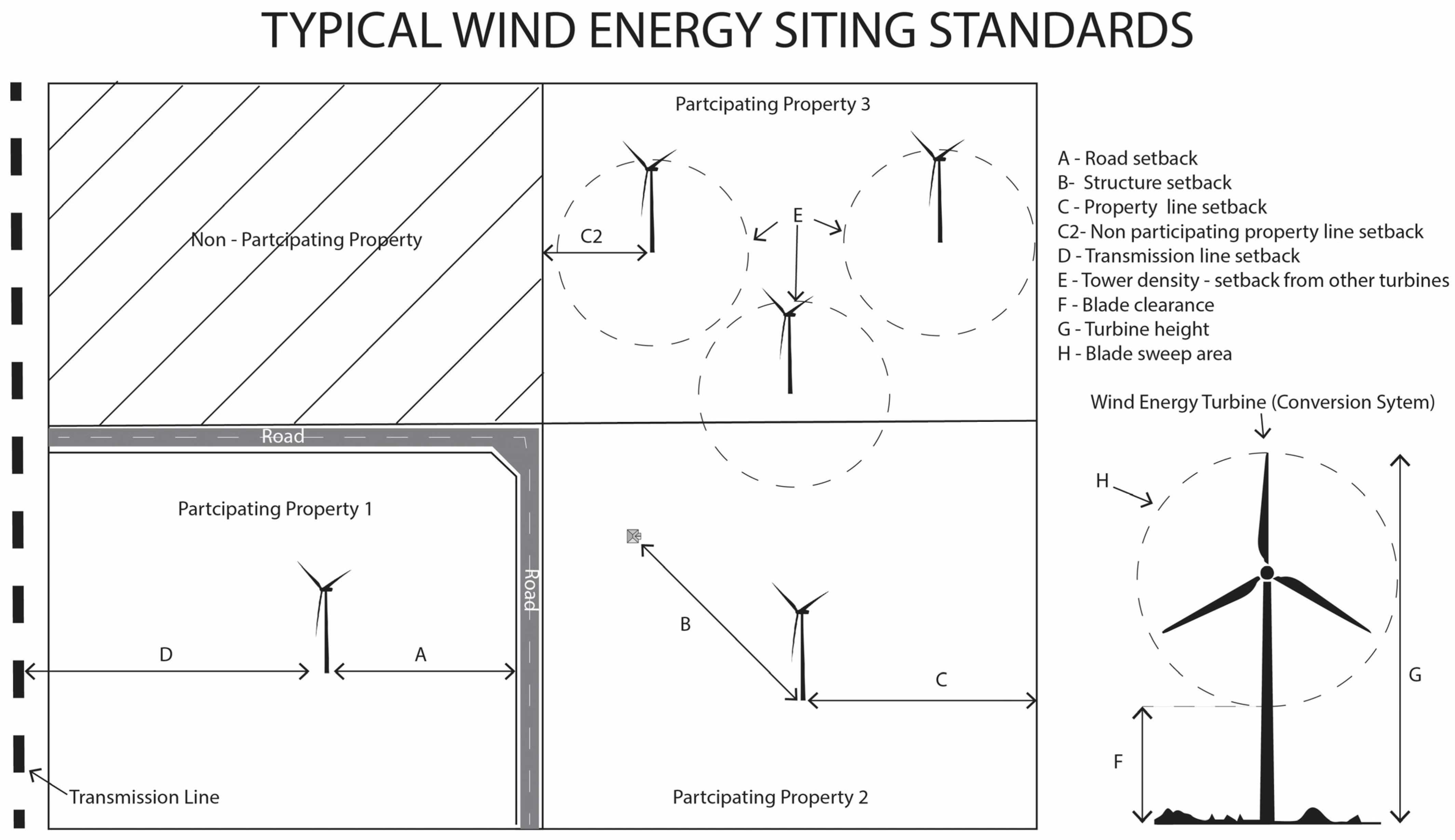 49]. Some counties, however, may choose a more complicated path of intentionally (or unintentionally) blocking wind installations by using the specific provisions of the zoning code or wind-specific regulation to greatly limit or even eliminate acceptable sites for wind installations.