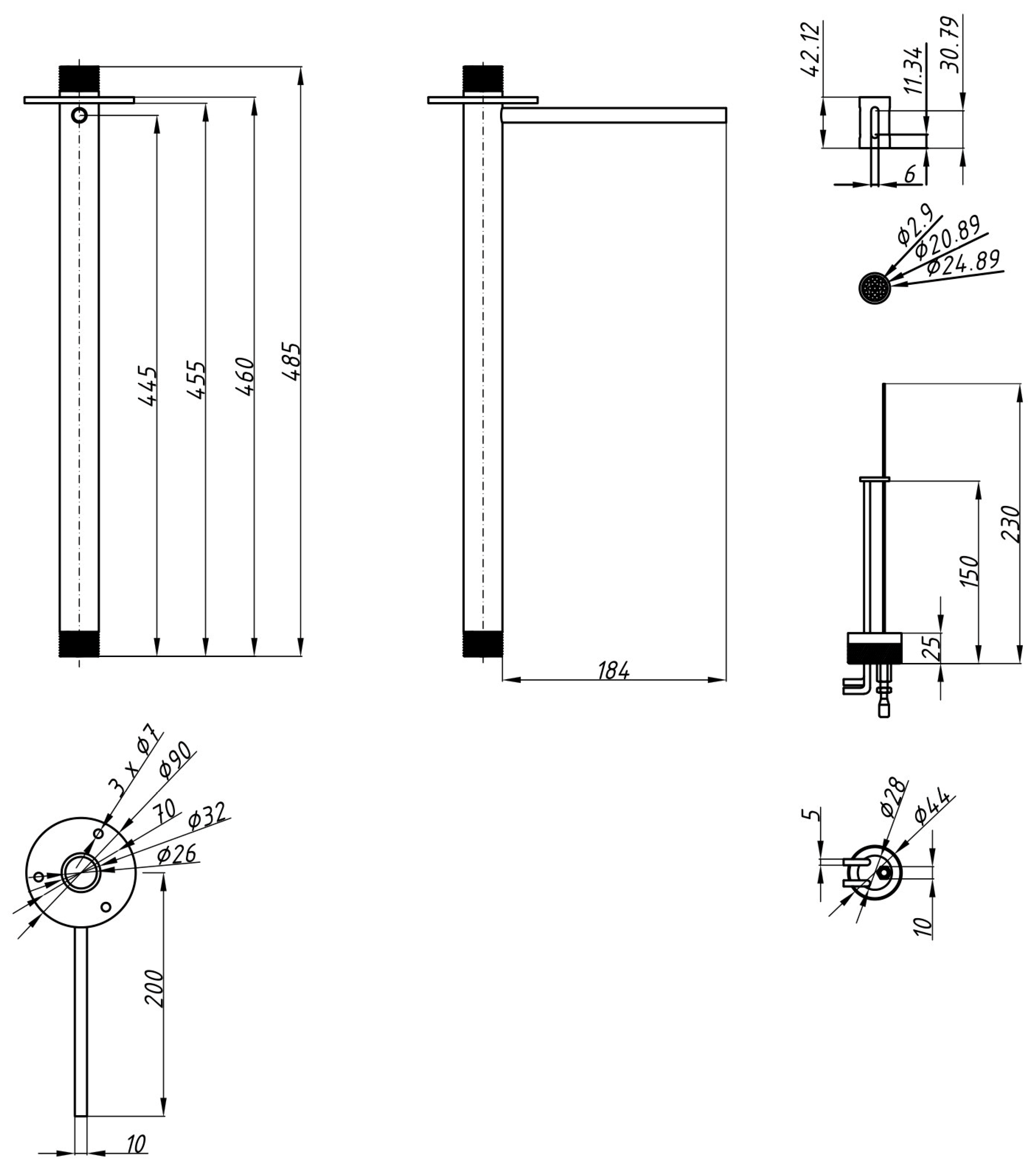 The adjustable columns, serving as vertical supports, permit precise height adjustment of the entire experimental system, enhancing flexibility and enabling ergonomic integration with various research configurations. A schematic of the stand, including dimensional details, is presented in Figure 5.