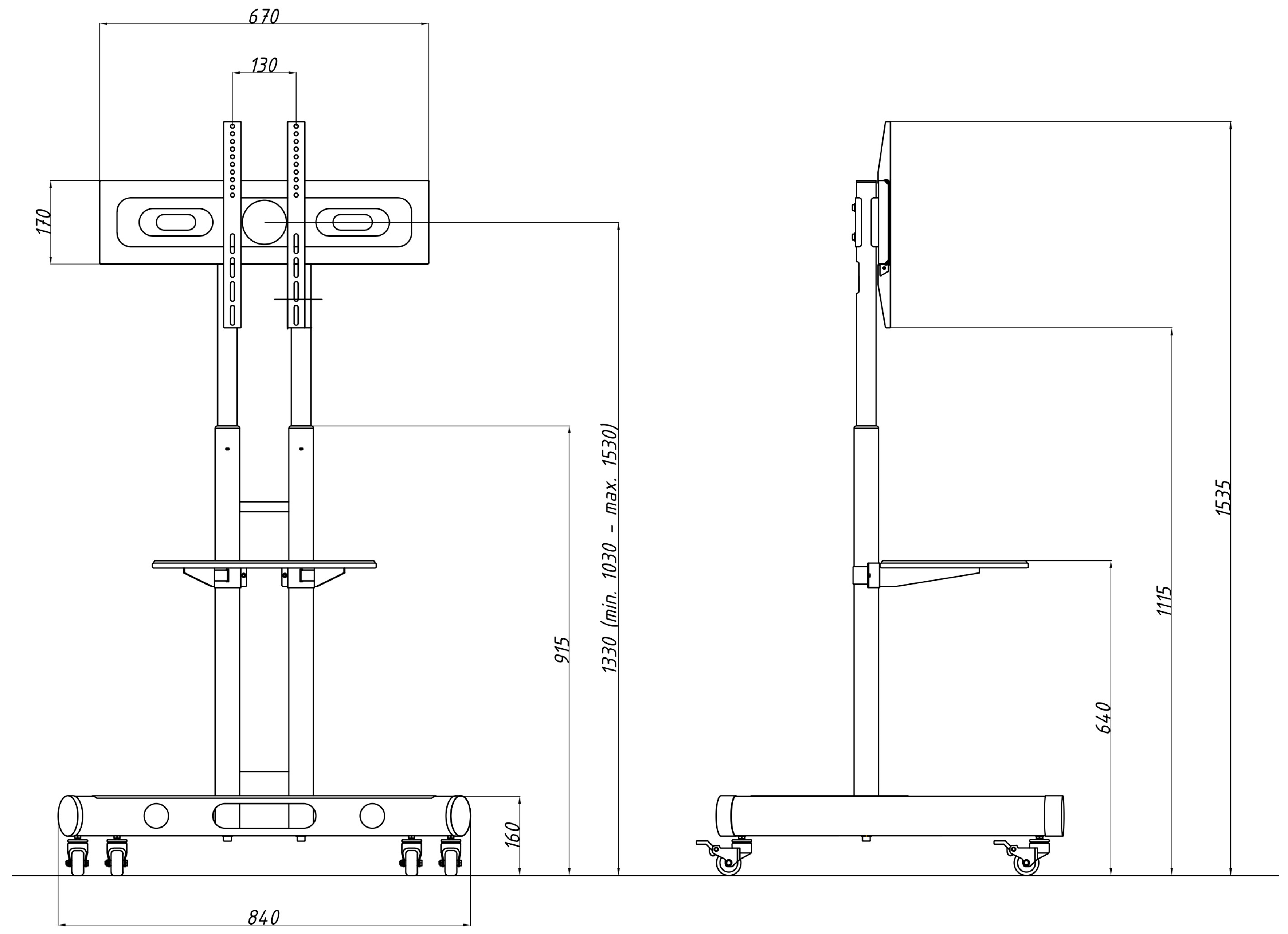 The stand consists of several elements: a dual-column main frame, a horizontal mounting plate, and a mobile base with wheels. The wheels are equipped with locking mechanisms, allowing the research station to be easily repositioned within the laboratory for integration with auxiliary instrumentation required by specific research procedures. The locking system ensures stable equipment positioning, eliminating the risk of unintended movement during operation.