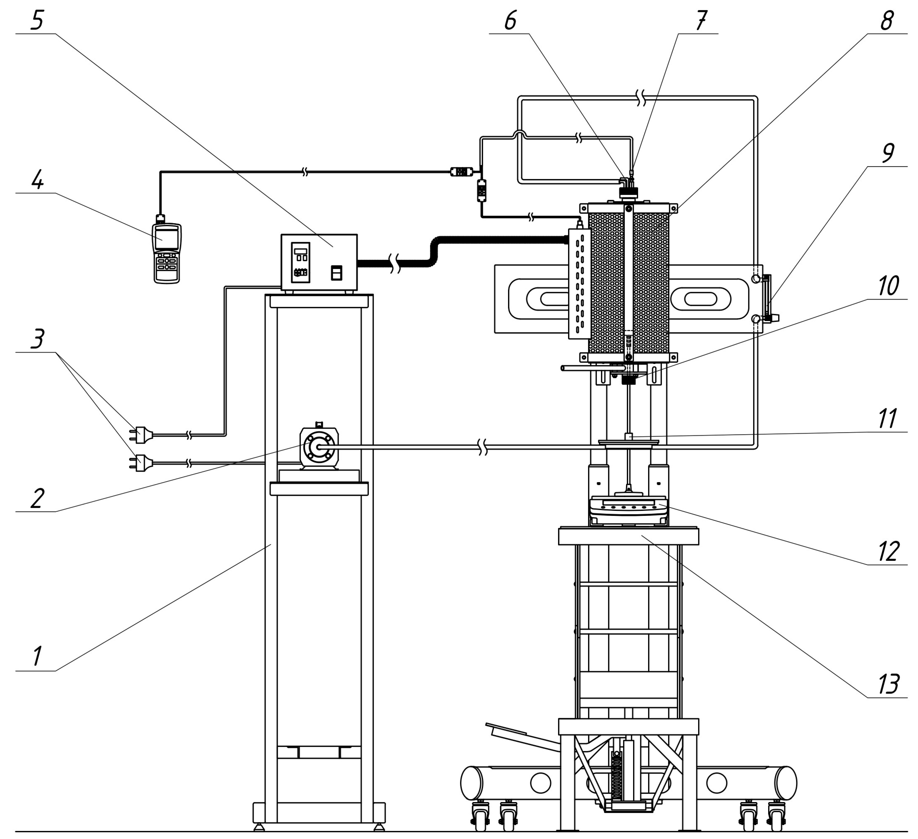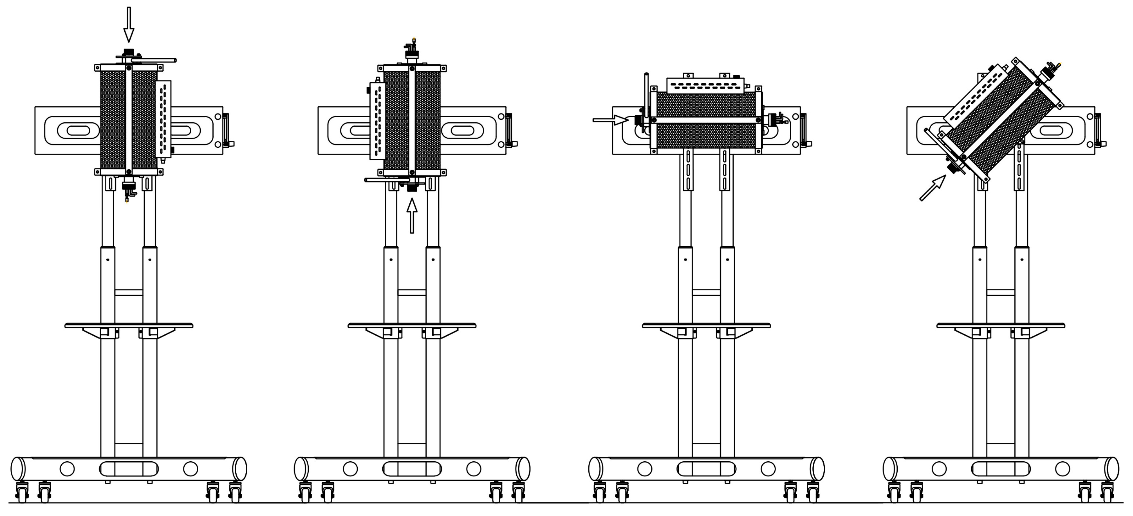 The modernization of the test stand resulted in significant benefits. The replacement of the support frame and the integration of a rotary mechanism have enabled new research possibilities that were previously unavailable. Figure 9 presents a schematic diagram of the modernized test stand.