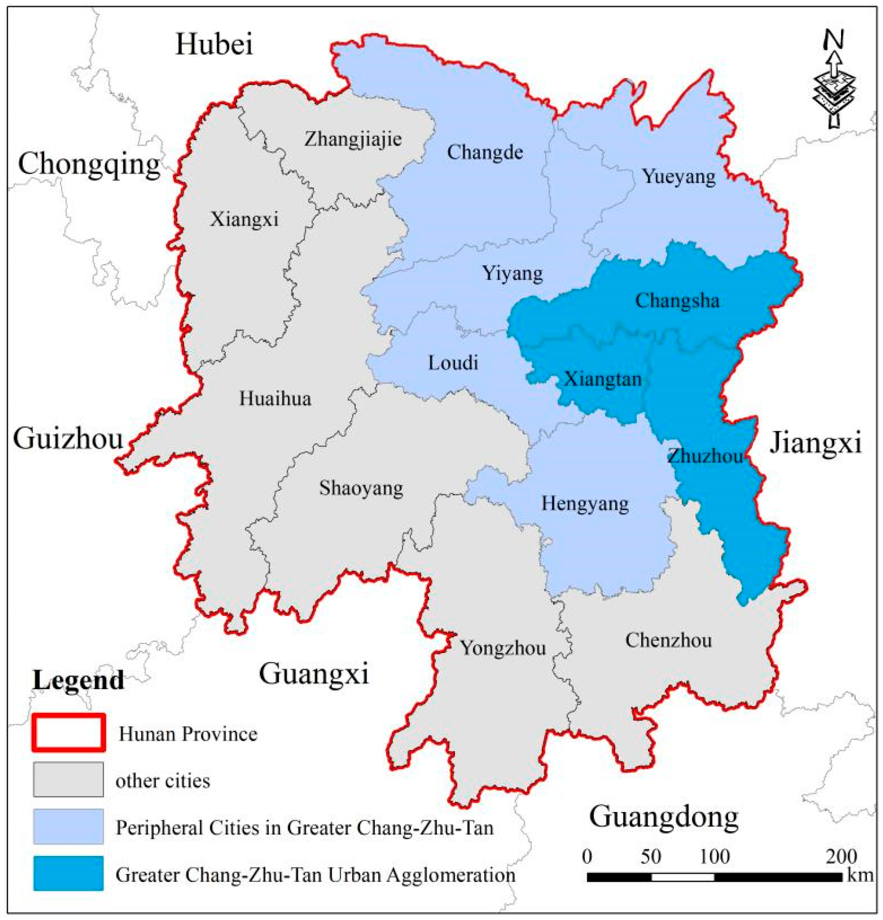 Middle Yangtze River Urban Agglomeration | The Greater Chang-Zhu-Tan urban agglomeration, as an important component of the Middle Yangtze River Urban Agglomeration, includes three core cities (Changsha, Zhuzhou, Xiangtan) and five surrounding cities (Hengyang, Changde, Loudi, Yiyang, Yueyang), serving as the core growth pole of economic development in Hunan Province. |
