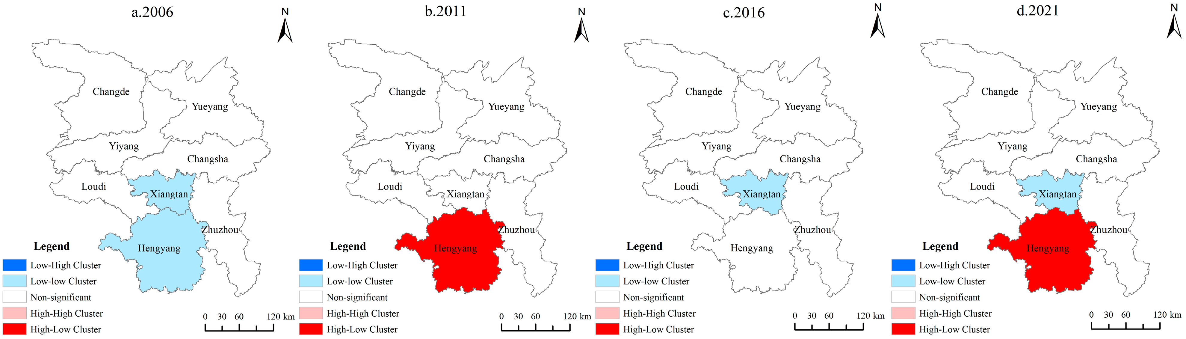 4.2.2. Local Spatial Moran’s I Index Analysis