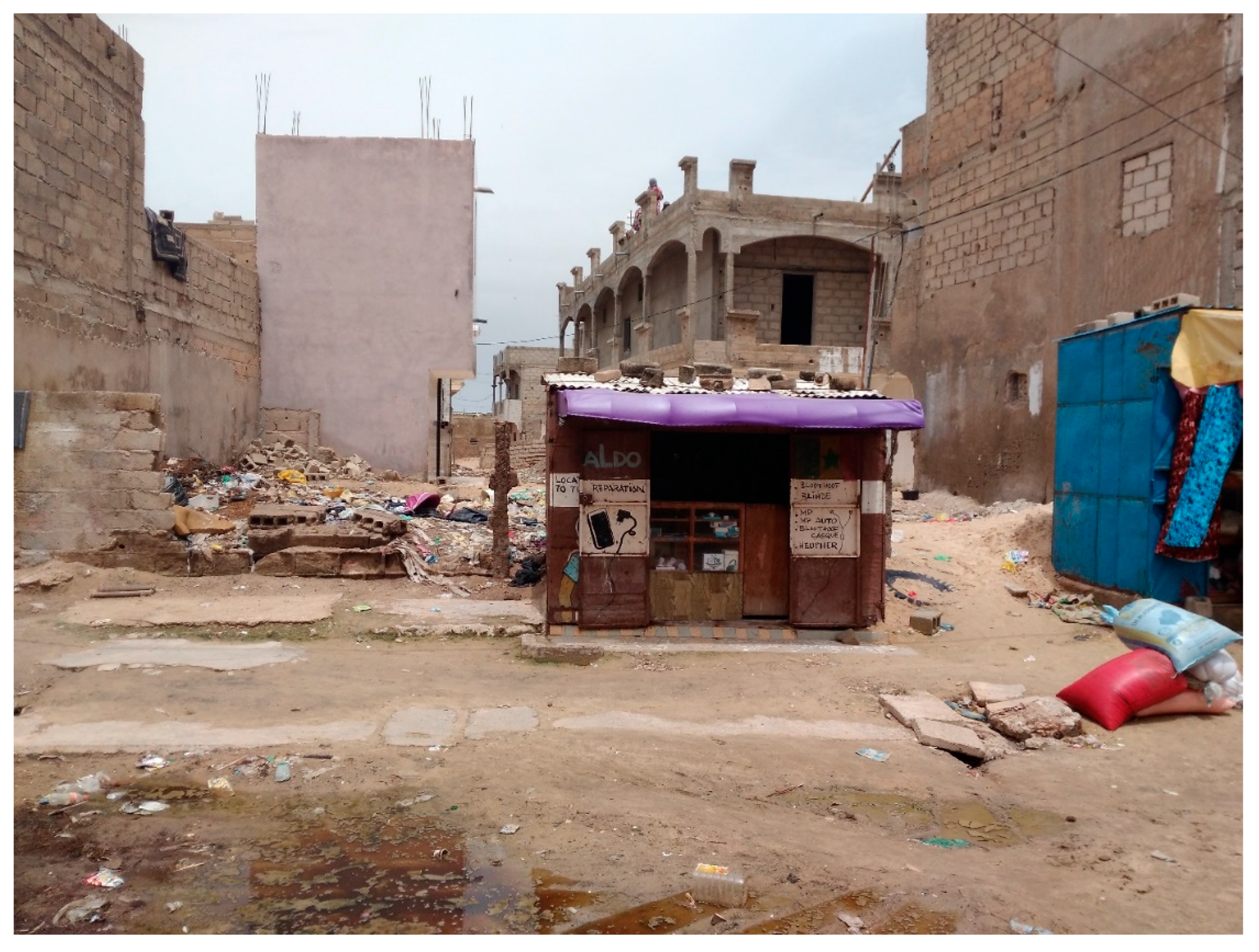 - Khouma, M. Commerce et gestion de l’espace urbain à Dakar: Enjeux, logiques et stratégies des acteurs. Ph.D. Thesis, Normandie Université, Caen, France, 2017. [Google Scholar]