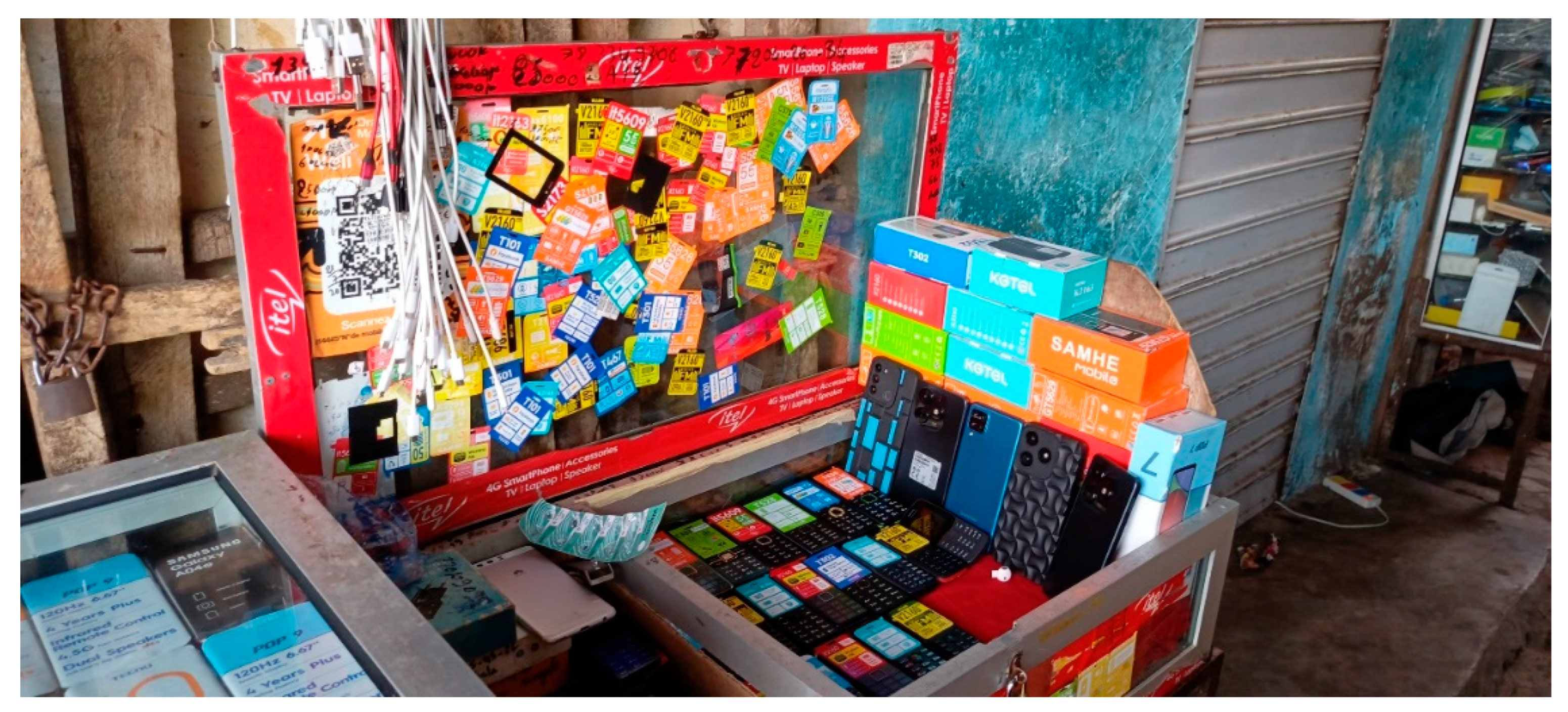 - Porter, G. Mobile Phones, Livelihoods and the Poor in Sub-Saharan Africa: Review and Prospect. Geogr. Compass 2012, 6, 241–259. [Google Scholar] [CrossRef]