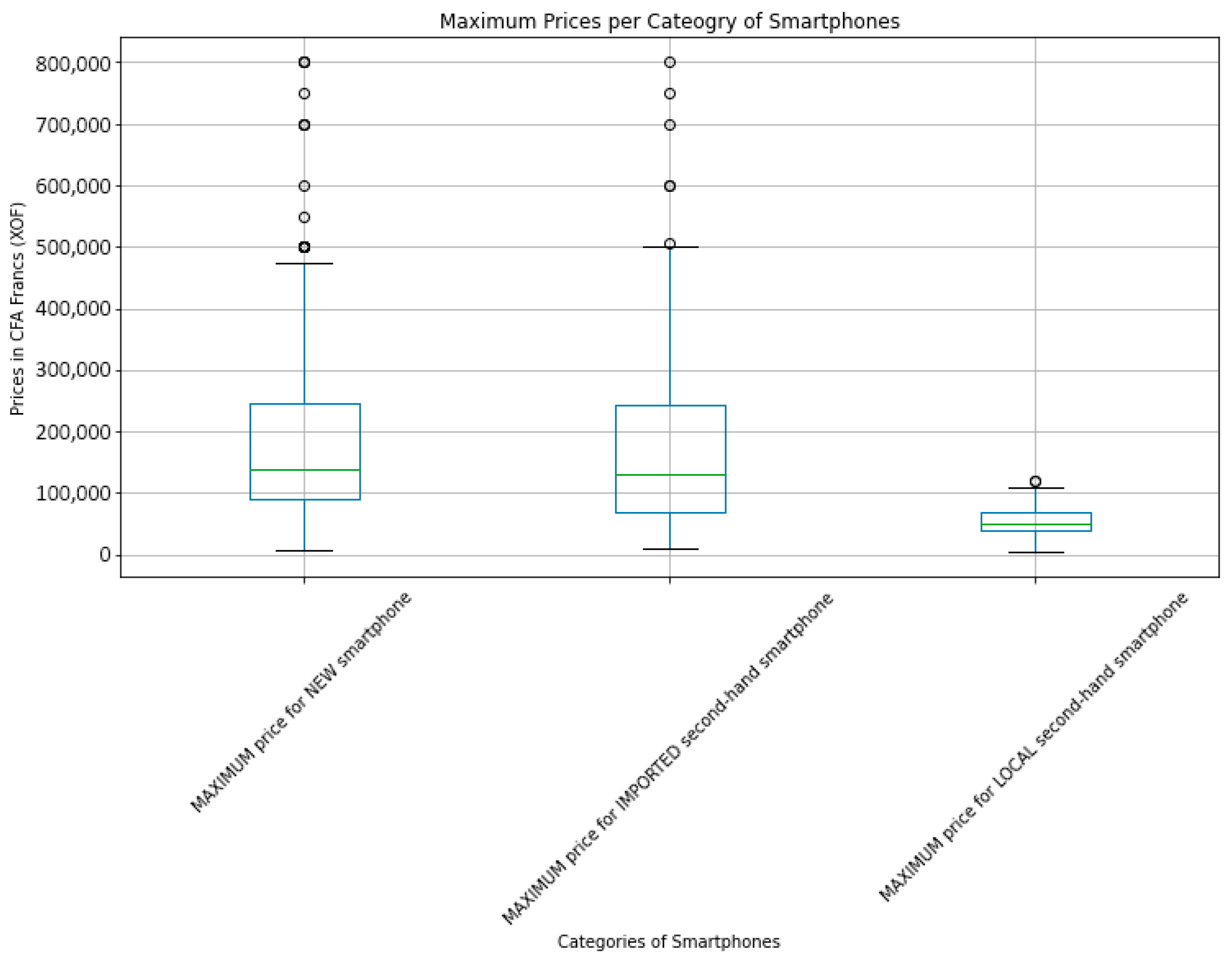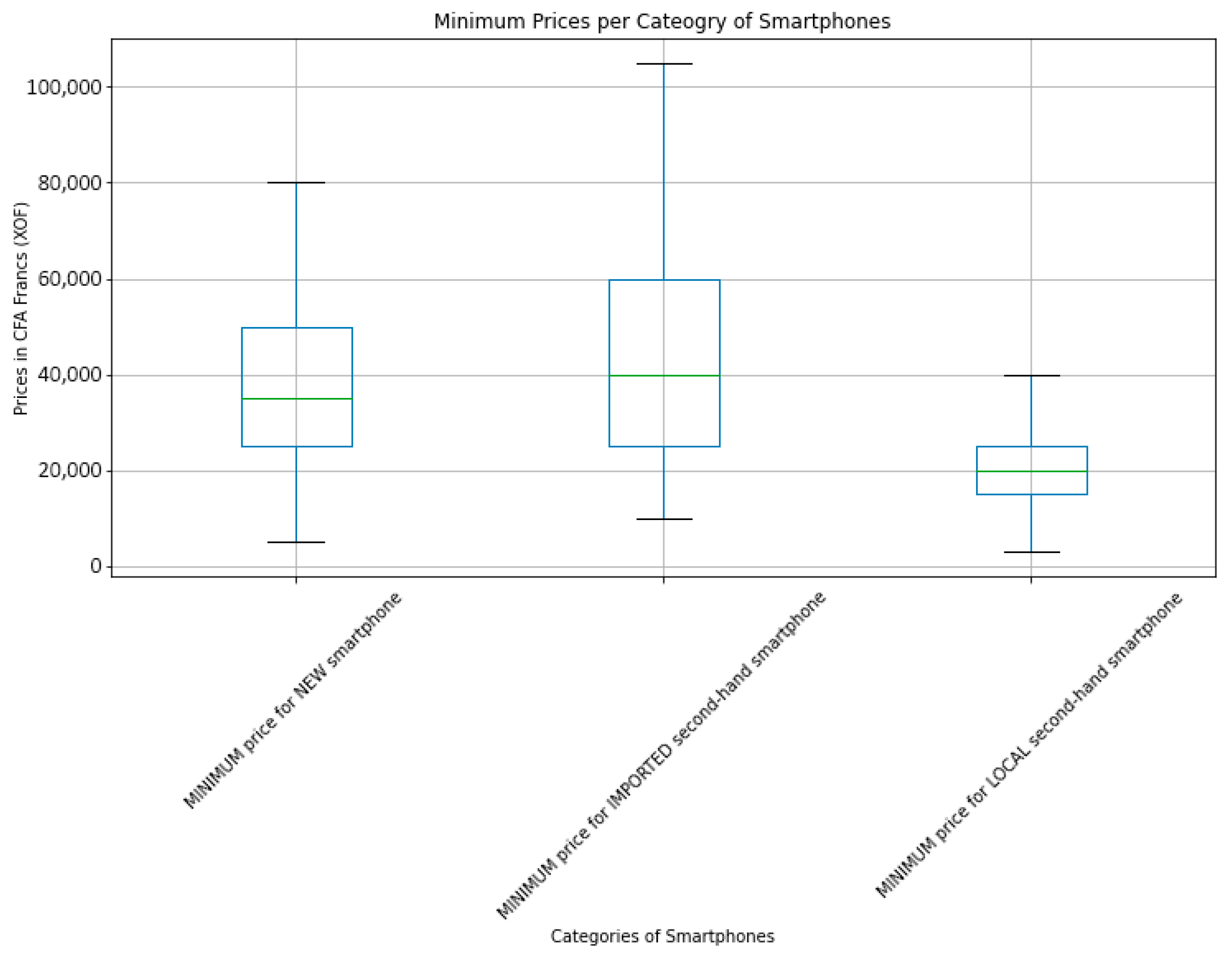 MINIMUM Price for NEW Smartphone | MAXIMUM Price for NEW Smartphone | MINIMUM Price for IMPORTED Second-Hand Smartphone | MAXIMUM Price for IMPORTED Second-Hand Smartphone | MINIMUM Price for LOCAL Second-Hand Smartphone | MAXIMUM Price for LOCAL Second-Hand Smartphone | |