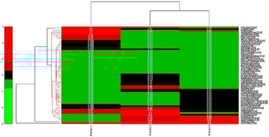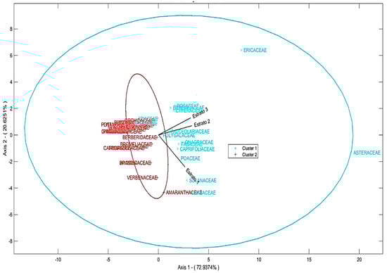 The results were visualised using HJ-Biplot, and complemented with k-means clustering to optimise the classification of floristic families [31,32].