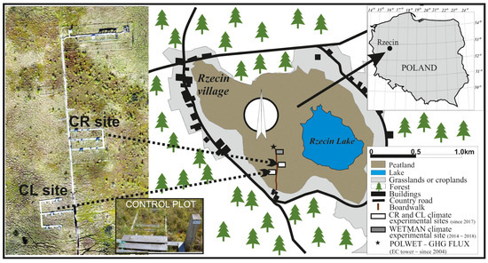 Location of Rzecin peatland as well as CR and CL sites with climate manipulation experiments.