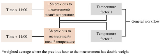 Scheme of the temperature factors calculation where the general workflow is the reference for Figure 4 scheme, and the temperature factors are secondary variables introduced at the start.