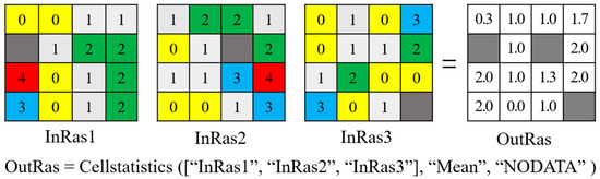 Aerosol optical depth (AOD) refers to the integral of the aerosol extinction coefficient throughout the entire vertical column in the atmosphere, serving as a proxy for the level of air pollution [34]. After obtaining the daily AOD data from MODIS MCD19A2, we used ARCGIS10 to calculate the annual average AOD value in the LRB. A calculation example is shown in Figure 2.
