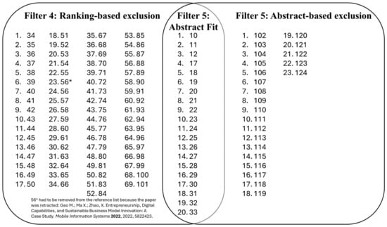 An overview of excluded and included papers focusing on filters 3 to 5.