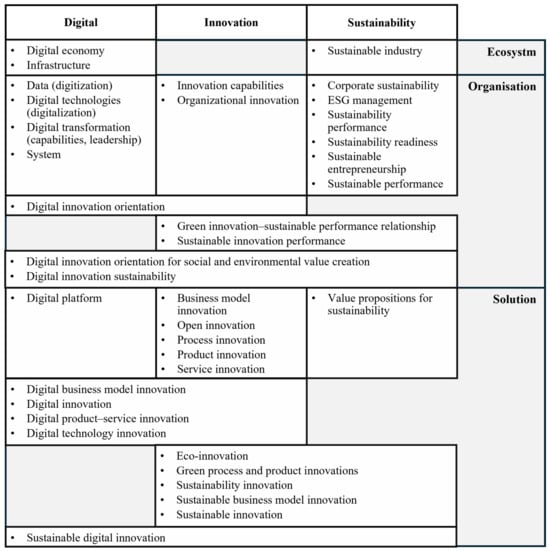 The combination of “I” and “S” leads to the terms eco-innovation, green innovation, sustainability-oriented innovation, sustainable business model innovation, sustainable innovation capability, and sustainable innovation.