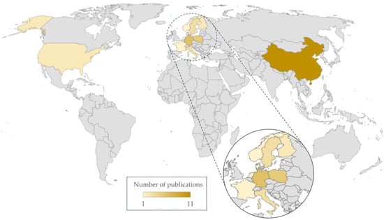 The main objective of this study was to review the current knowledge on the presence of HMs and antibiotics in digestate derived from various feedstocks. The article describes the key reservoirs of these micropollutants and the role of the AD process in their release to the environment. The growing levels of microbial resistance to HMs and antibiotics pose a serious public health concern and an environmental issue worldwide, which is why the potential effects of micropollutant residues in digestate have also been discussed. An ecological risk assessment of HMs and drugs has been performed to determine the severity of the risk resulting from the introduction of digestate into the soil environment. However, the current study has several limitations. Firstly, despite a large number of scientific papers on the presence of HMs and antibiotics in potential AD substrates, including raw animal manure, agricultural residues, sewage sludge, and the organic fraction of municipal solid waste or mixed wastes [22,23,24,25,26,27,28,29,30,31,32], the concentrations of these micropollutants in the resulting digestates have been analyzed by very few authors. Secondly, most studies investigating the fate of HMs and antibiotics during AD included feedstock supplementation before the process, making it impossible to assess the real, environmental concentrations of these pollutants in digestates [33,34,35,36,37]. Moreover, many scientific papers examining the impact of soil fertilization with digestate focused only on the concentrations of HMs and antibiotics in soil samples, while disregarding AD by-products [38,39,40]. In addition, the solid−liquid separation of AD products has also received little attention in the existing literature. To the best of our knowledge, there is a general scarcity of comprehensive review studies addressing the levels of HM and antibiotic residues in various anaerobically stabilized organic wastes. The number of reviewed papers from various regions of the world is presented in Figure 1. The authors were unable to find any studies presenting data on the content of HMs and/or antibiotics in digestates from Africa and South America. The only published studies addressing digestate contamination on the Asian continent came from China (11 articles). This issue was most often studied by research teams from European countries (22 articles), but many of these articles present selective data. Residual contamination is a broad and complex area of research involving different types of feedstocks, AD conditions, digestate fractions, and their environmental impacts, which is why further research is needed to fill these knowledge gaps.