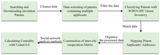 In the first step, we query the invention patent data from the official website of the State Intellectual Property Office of China (SIPO) (https://www.cnipa.gov.cn/ (accessed on 30 June 2023)) for 41 cities in the YRD region, covering the period from 2011 to 2020. During this step, we take into account the quality of the patent applications. We specifically focus on patents that are authorized after application, as these are considered more reliable indicators of genuine technological innovation. Although patents have a validity period, we include those patents that are authorized during the study period, regardless of whether they are still valid. This approach ensures that patents granted during the period, even if expired, reflect the innovation level at the time of application. This filtering process results in a dataset of 1,232,791 patents, forming the foundation for the subsequent steps.